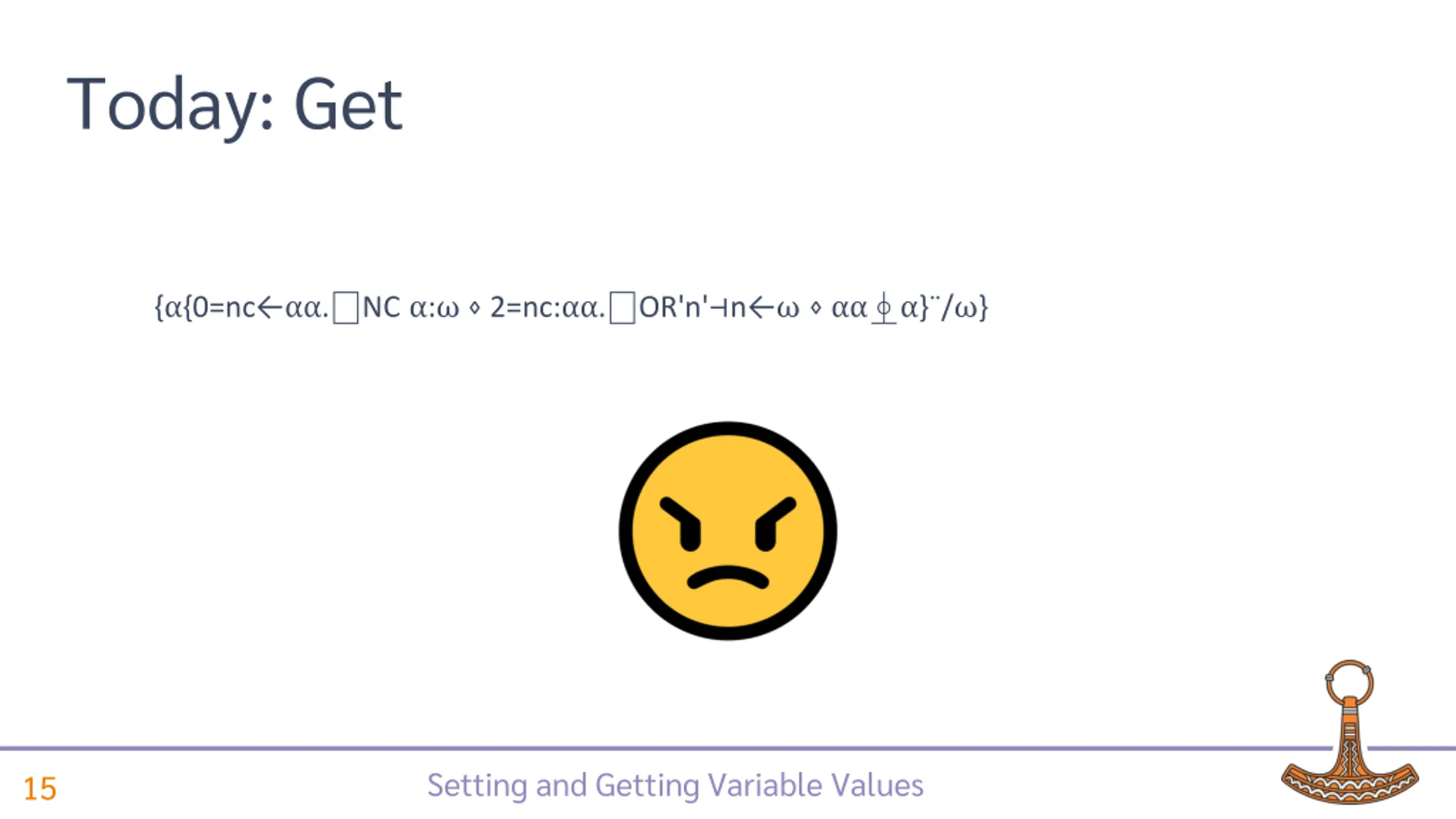 Today: Get {_ {0=nc . NC : 2=nc: . OR'n' n } / } Setting and Getting Variable Values 15