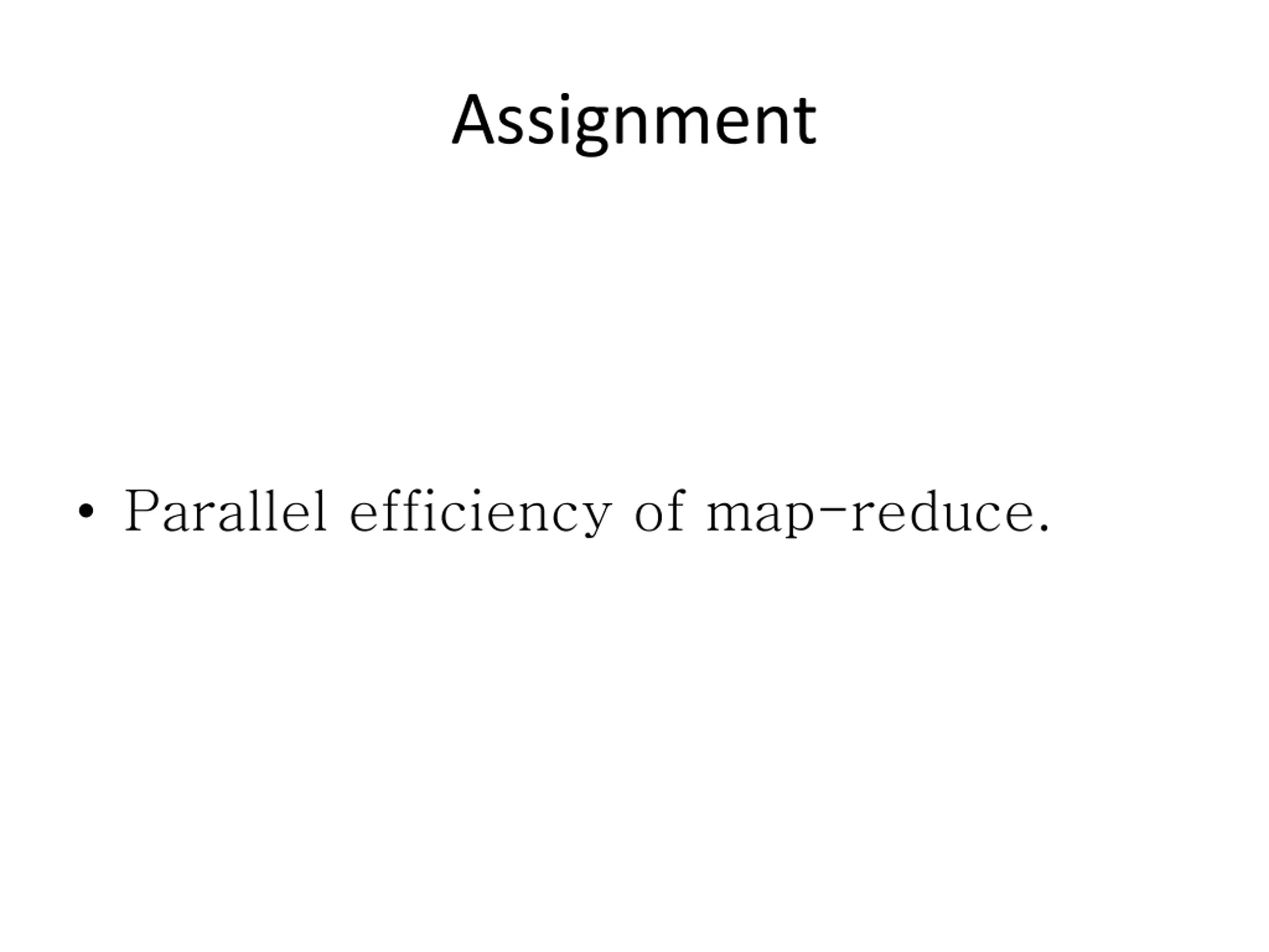 Assignment Parallel efficiency of map-reduce.