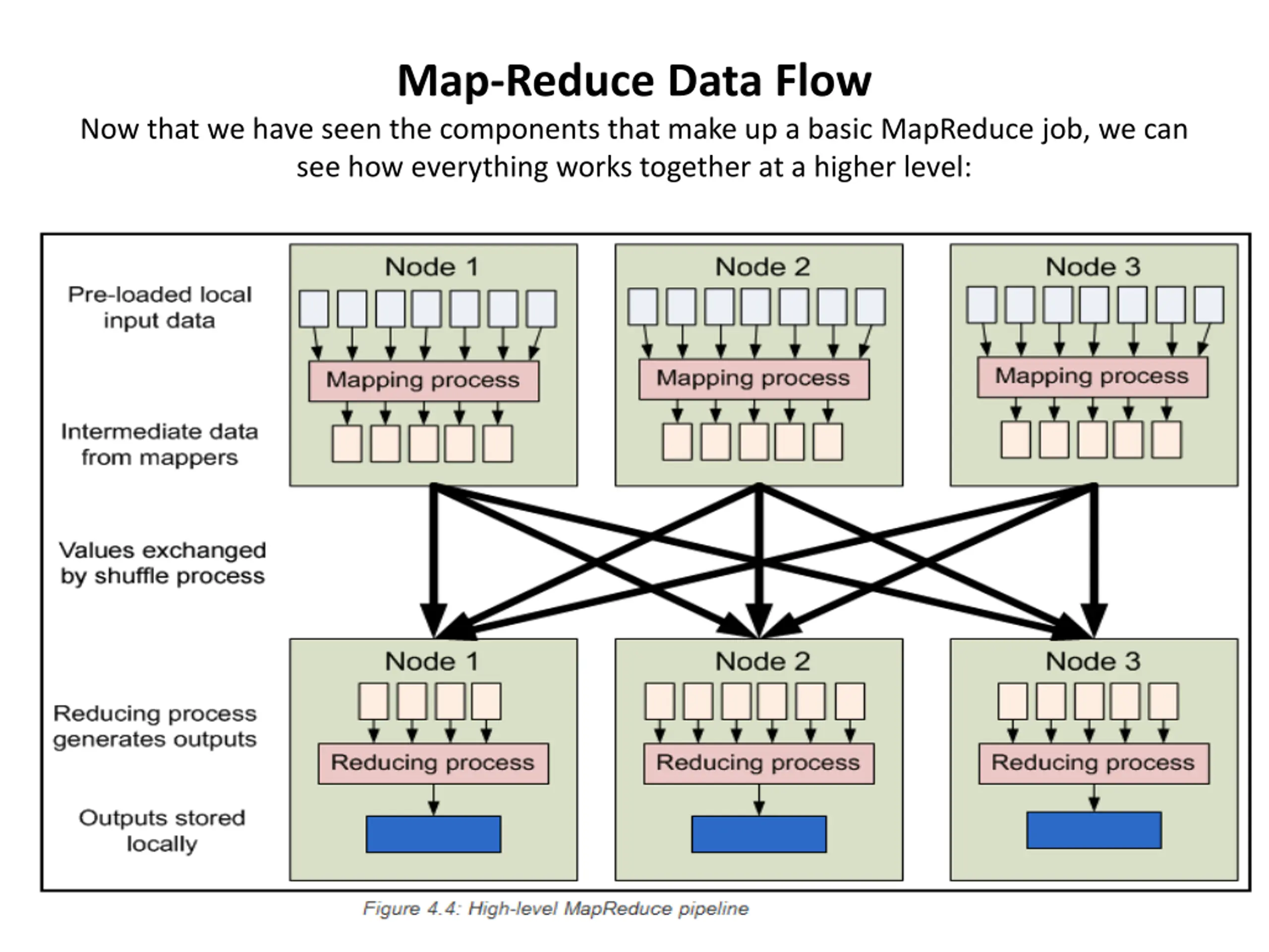 Map-Reduce Data Flow Now that we have seen the components that make up a basic MapReduce job, we can see how everything works together at a higher level: