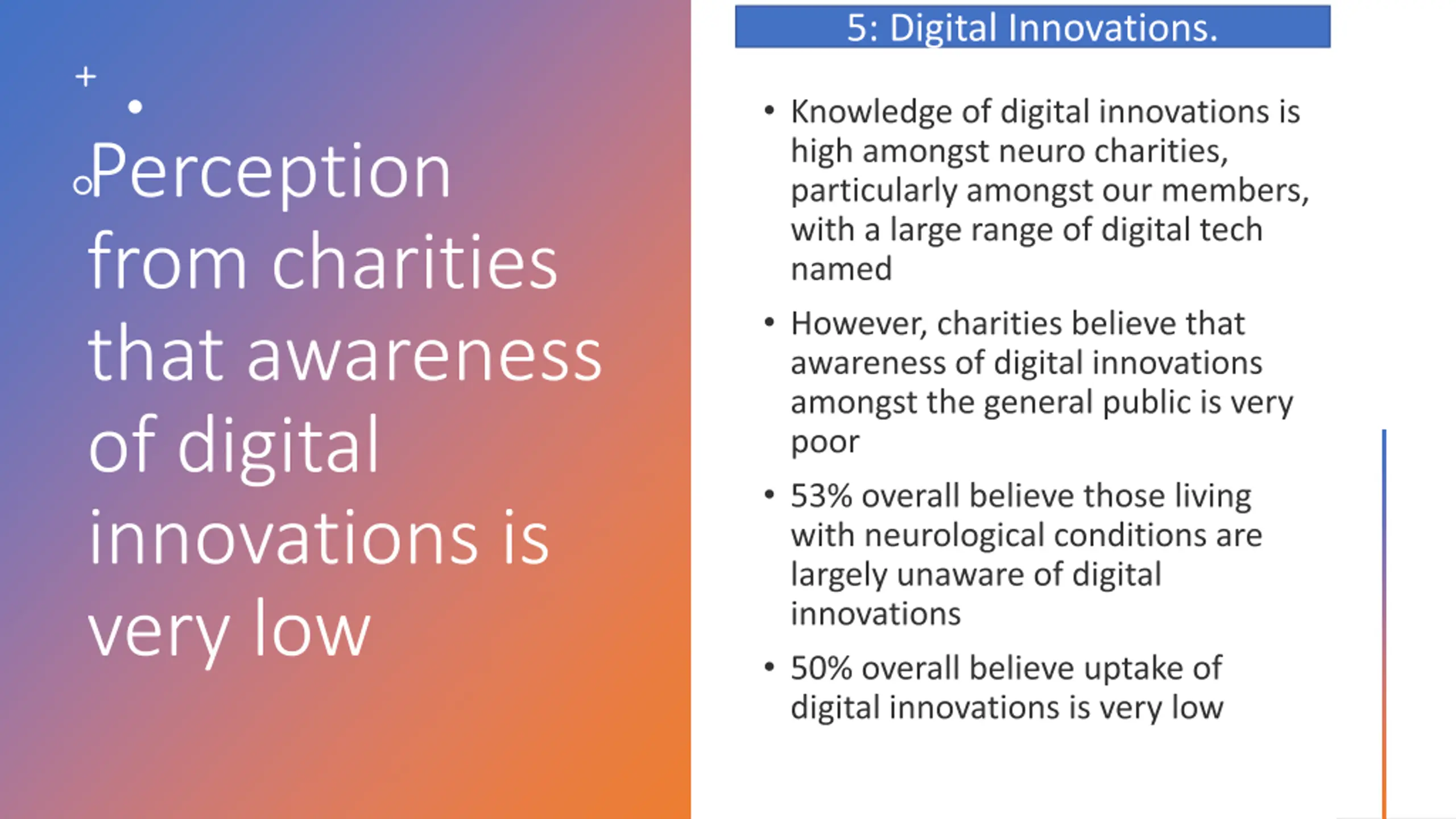 5: Digital Innovations. Perception from charities that awareness of digital innovations is very low