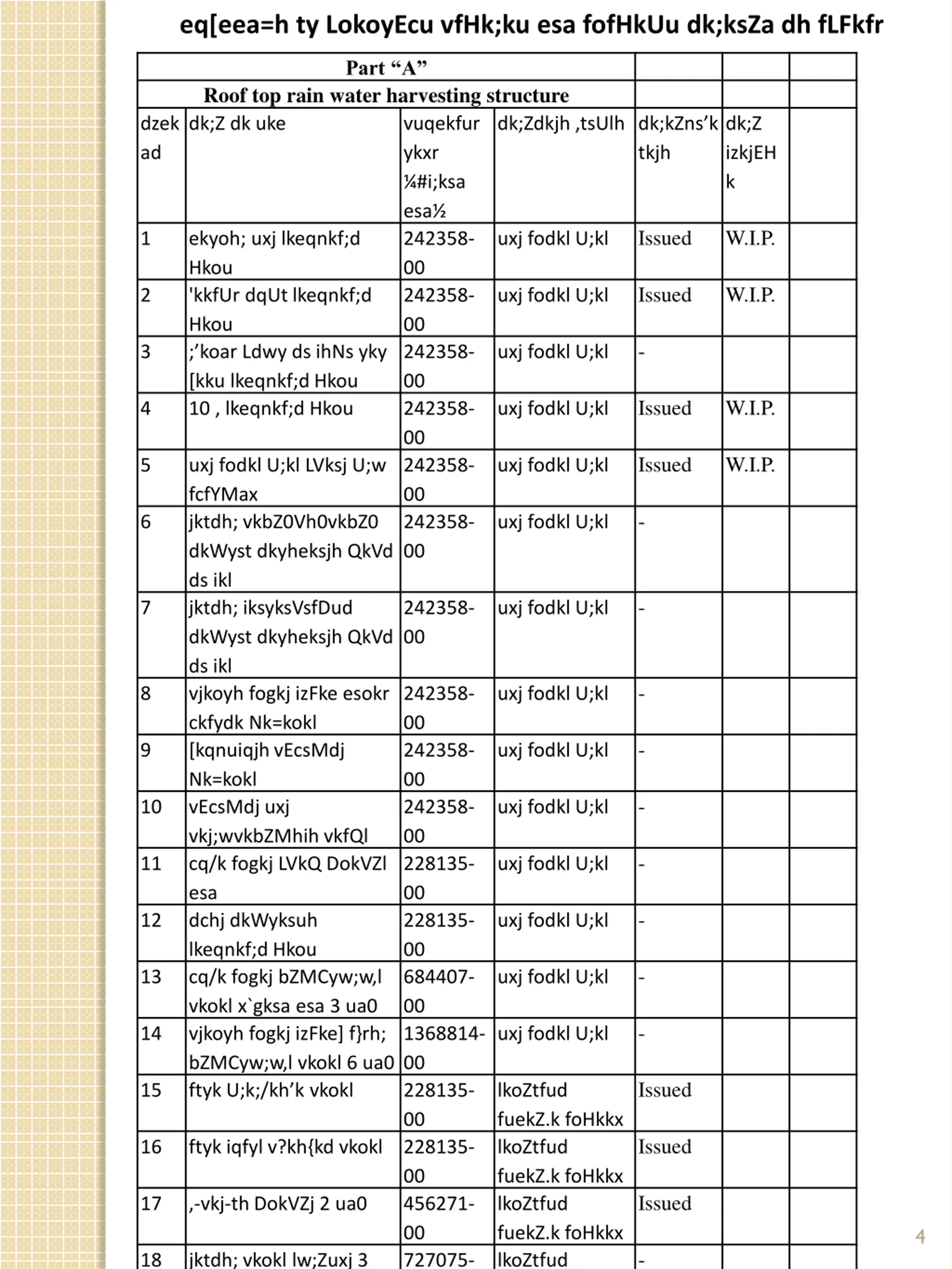 eq[eea=h ty LokoyEcu vfHk;ku esa fofHkUu dk;ksZa dh fLFkfr Part A Roof top rain water harvesting structure dk;Z dk uke dzek ad vuqekfur ykxr #i;ksa esa 242358- 00 242358- 00 242358- 00 242358- 00 242358- 00 242358- 00 dk;Zdkjh ,tsUlh dk;kZns k dk;Z izkjEH k tkjh Issued W.I.P. 1 ekyoh; uxj lkeqnkf;d Hkou 'kkfUr dqUt lkeqnkf;d Hkou ; koar Ldwy ds ihNs yky [kku lkeqnkf;d Hkou 10 , lkeqnkf;d Hkou uxj fodkl U;kl Issued W.I.P. 2 uxj fodkl U;kl - 3 uxj fodkl U;kl Issued W.I.P. 4 uxj fodkl U;kl Issued W.I.P. 5 uxj fodkl U;kl LVksj U;w fcfYMax jktdh; vkbZ0Vh0vkbZ0 dkWyst dkyheksjh QkVd ds ikl jktdh; iksyksVsfDud dkWyst dkyheksjh QkVd ds ikl vjkoyh fogkj izFke esokr ckfydk Nk=kokl [kqnuiqjh vEcsMdj Nk=kokl vEcsMdj uxj vkj;wvkbZMhih vkfQl cq/k fogkj LVkQ DokVZl esa dchj dkWyksuh lkeqnkf;d Hkou cq/k fogkj bZMCyw;w,l vkokl x`gksa esa 3 ua0 vjkoyh fogkj izFke] f}rh; bZMCyw;w,l vkokl 6 ua0 ftyk U;k;/kh k vkokl uxj fodkl U;kl - 6 uxj fodkl U;kl - 7 242358- 00 uxj fodkl U;kl mu - 8 242358- 00 242358- 00 242358- 00 228135- 00 228135- 00 684407- 00 1368814- 00 228135- 00 228135- 00 456271- 00 727075- uxj fodkl U;kl - 9 uxj fodkl U;kl - 10 uxj fodkl U;kl - 11 uxj fodkl U;kl - 12 uxj fodkl U;kl - 13 uxj fodkl U;kl - 14 uxj fodkl U;kl Issued 15 lkoZtfud fuekZ.k foHkkx lkoZtfud fuekZ.k foHkkx lkoZtfud fuekZ.k foHkkx lkoZtfud Issued 16 ftyk iqfyl v?kh{kd vkokl Issued 17 ,-vkj-th DokVZj 2 ua0 4 - 18 jktdh; vkokl lw;Zuxj 3