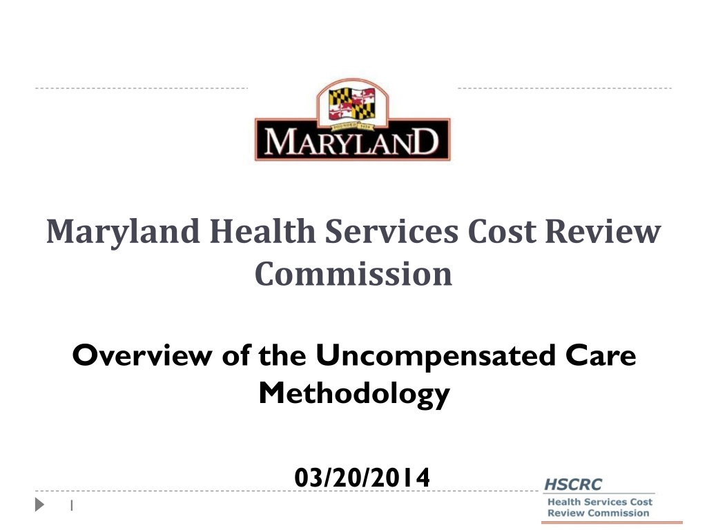 http://broadneck.info/wp-content/uploads/2009/05/maryland_logo.jpghttp://broadneck.info/wp-content/uploads/2009/05/maryland_logo.jpg Maryland Health Services Cost Review Commission Overview of the Uncompensated Care Methodology 03/20/2014 1