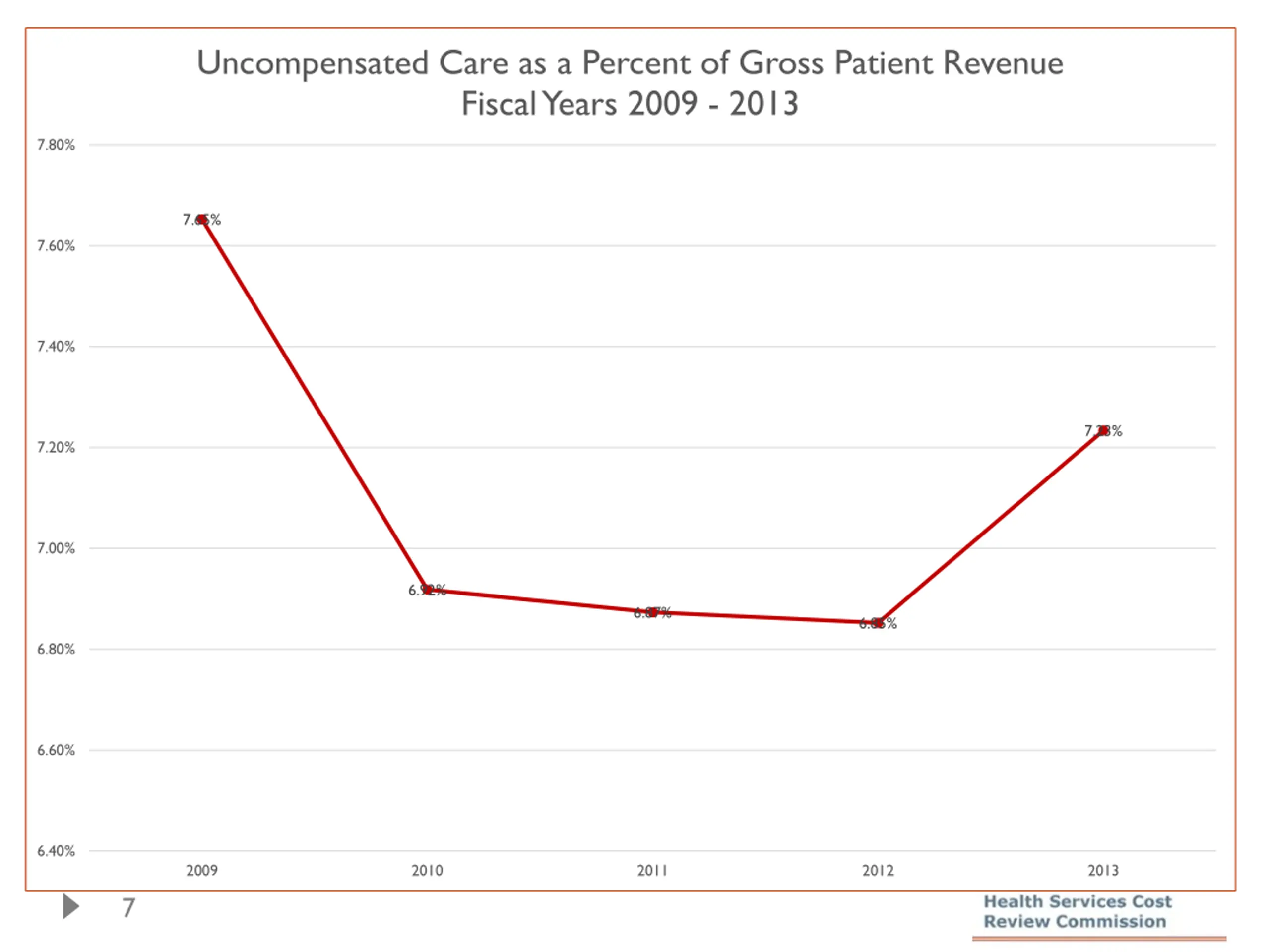 Uncompensated Care as a Percent of Gross Patient Revenue Fiscal Years 2009 - 2013 7.80% 7.65% 7.60% 7.40% 7.23% 7.20% 7.00% 6.92% 6.87% 6.85% 6.80% 6.60% 6.40% 2009 2010 2011 2012 2013 7