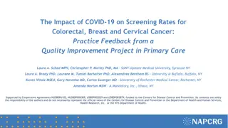 Colorectal cancer is a significant health concern in Maryland, with screening being crucial for early detection and prevention. This information aids in initiating discussions between Medicaid providers and managed care organizations to improve screening rates and reduce cancer incidence. The slides highlight current statistics, recommended screening tests, gaps in screening rates, and strategies for increasing screening uptake among clients. Healthcare providers are encouraged to implement best practices outlined for optimizing CRC screening within their practices.
