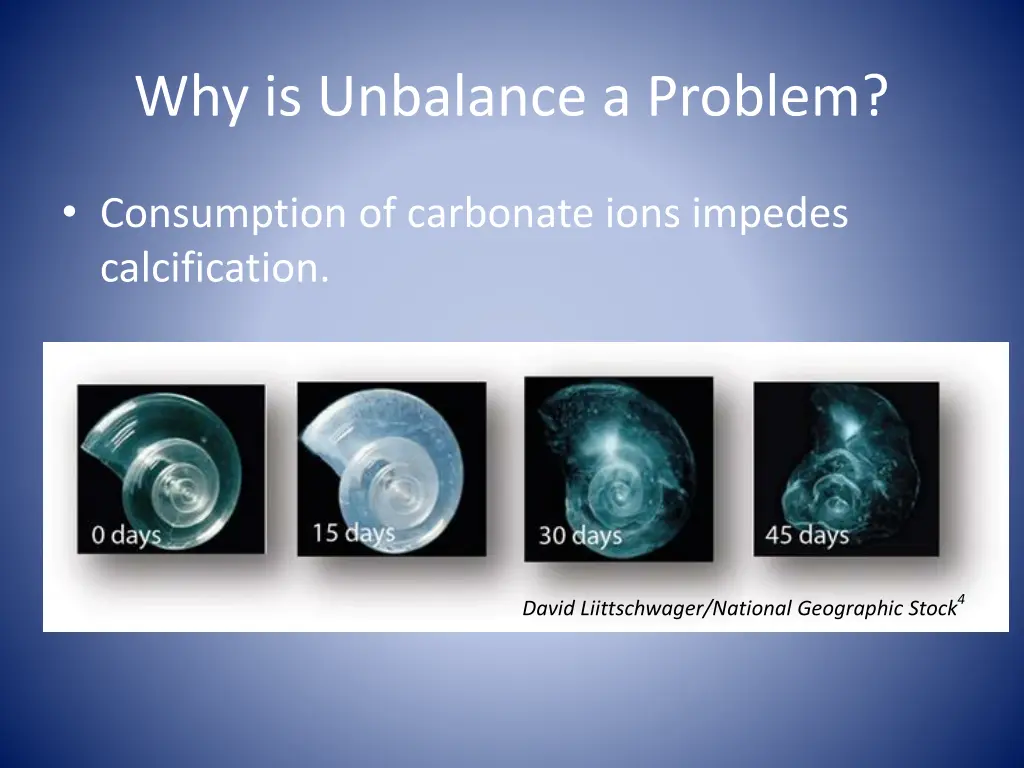 Why is Unbalance a Problem? Consumption of carbonate ions impedes calcification. David Liittschwager/National Geographic Stock4