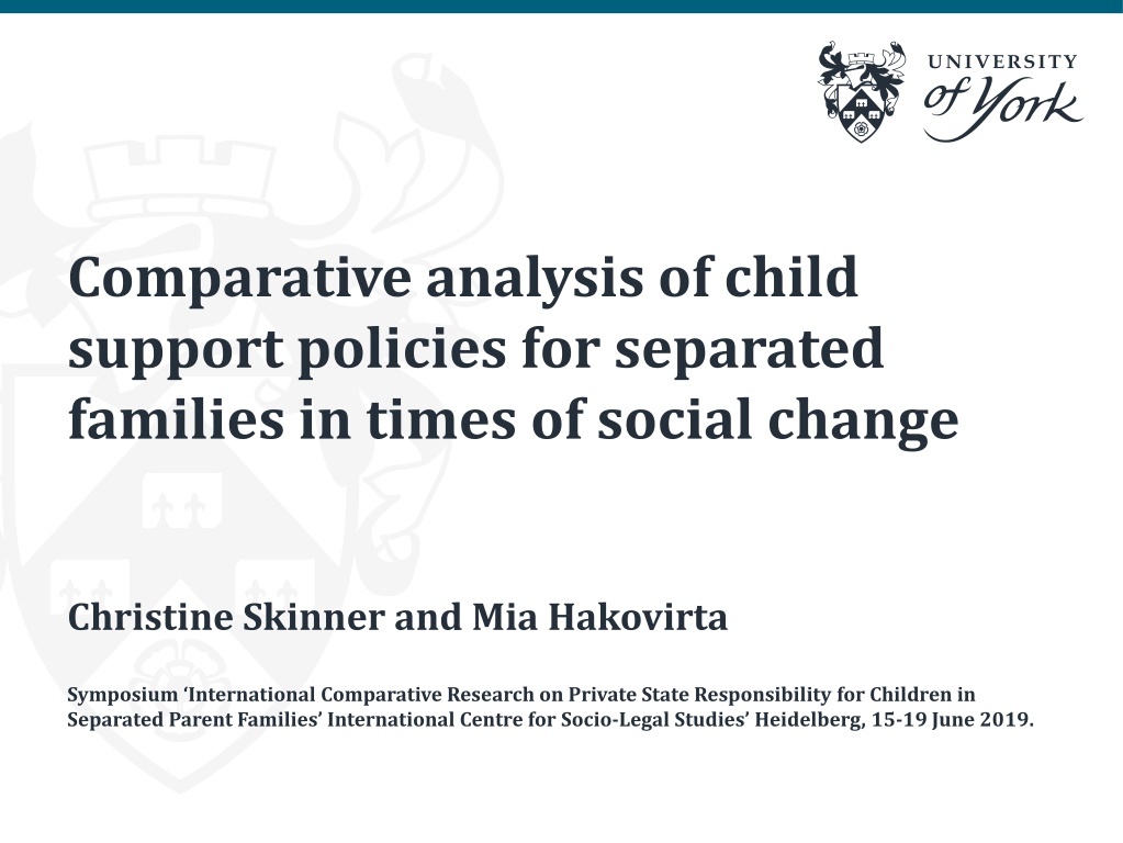 Comparative analysis of child support policies for separated families in times of social change Christine Skinner and Mia Hakovirta Symposium International Comparative Research on Private State Responsibility for Children in Separated Parent Families International Centre for Socio-Legal Studies Heidelberg, 15-19 June 2019.