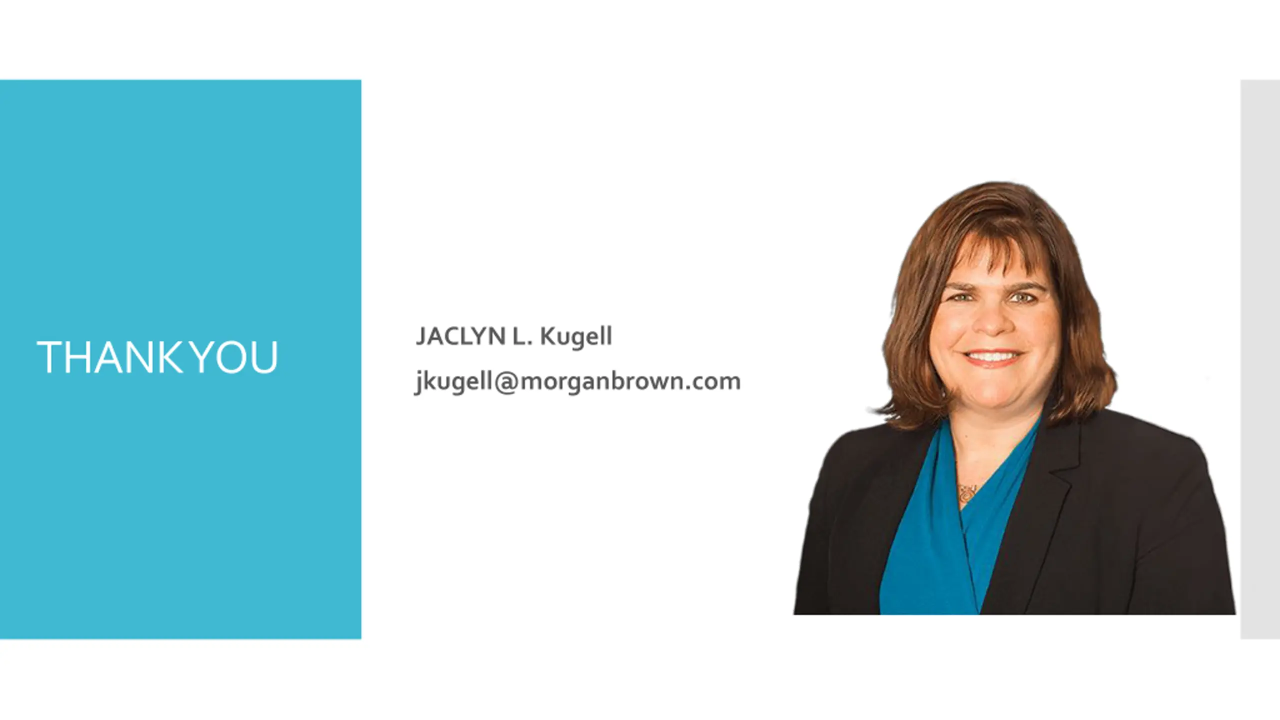 JACLYN L. Kugell THANK YOU jkugell@morganbrown.com