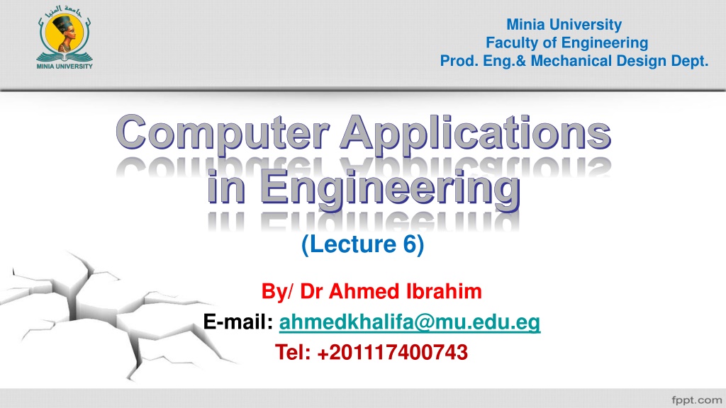 Minia University Faculty of Engineering Prod. Eng.& Mechanical Design Dept. Computer Applications in Engineering (Lecture 6) By/ Dr Ahmed Ibrahim E-mail: ahmedkhalifa@mu.edu.eg Tel: +201117400743