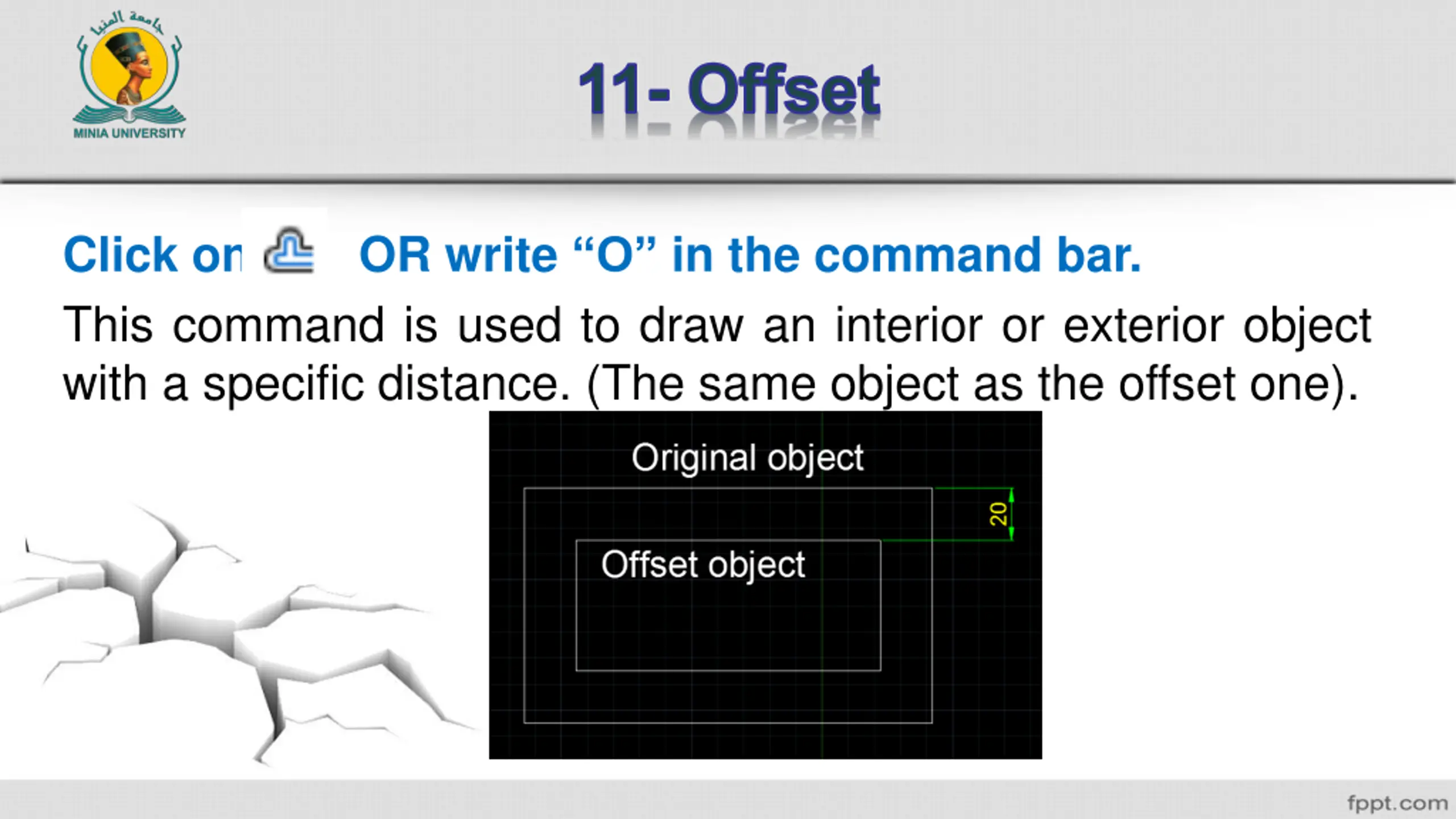 11- Offset Click on This command is used to draw an interior or exterior object with a specific distance. (The same object as the offset one). OR write O in the command bar.