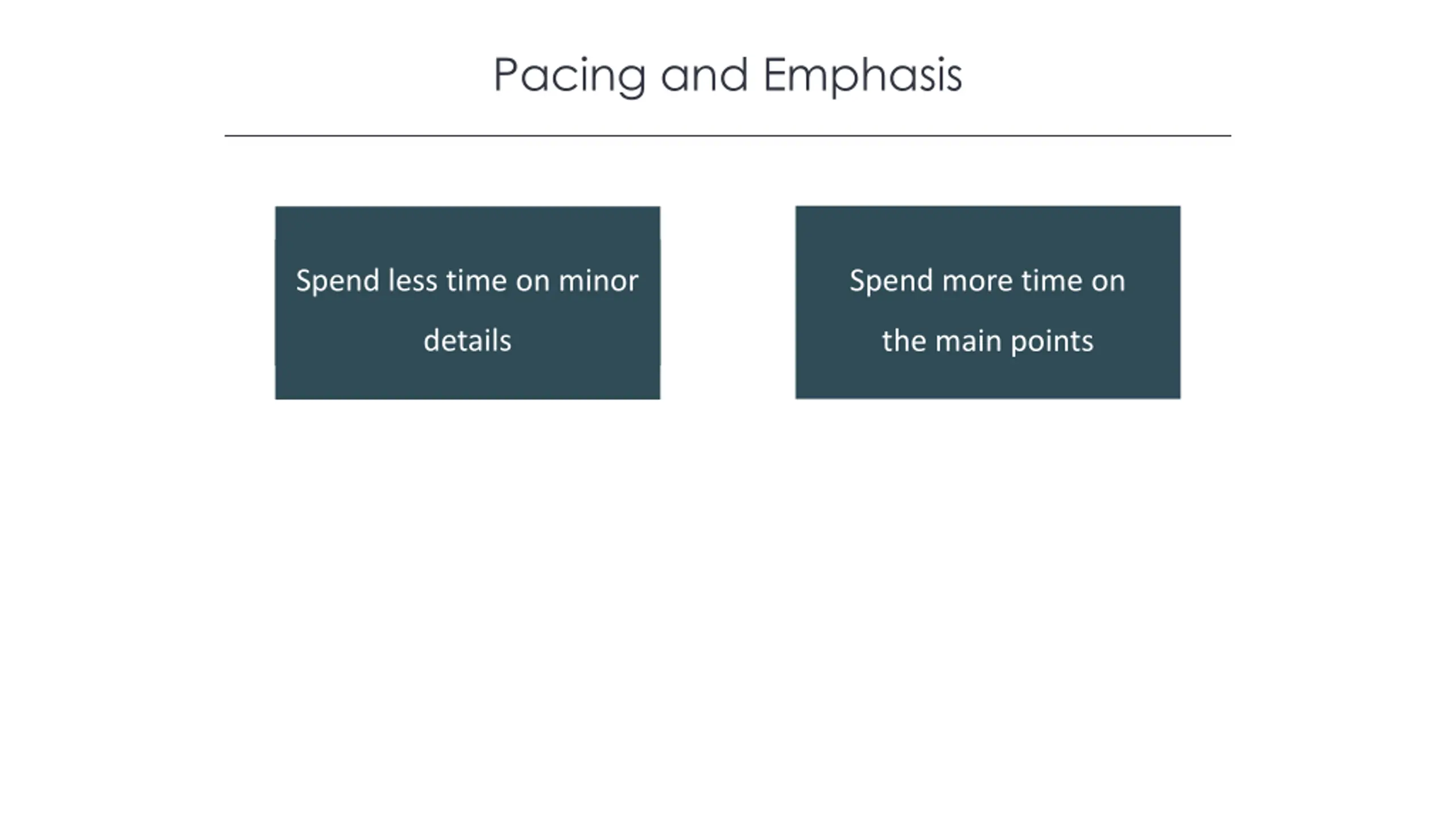 Pacing and Emphasis Spend less time on minor Spend more time on details the main points HAWKES LEARNING