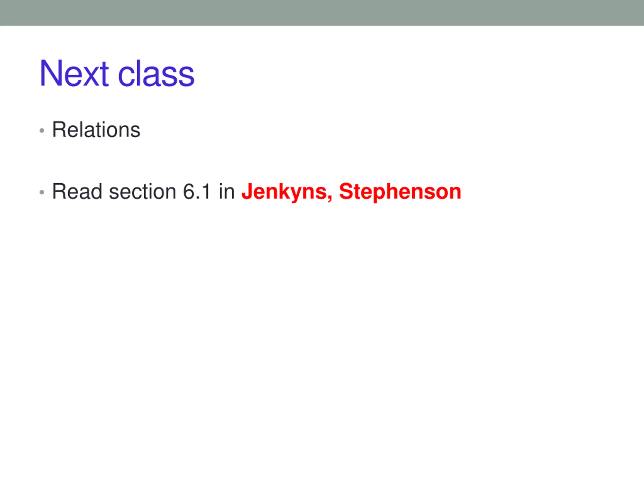 Next class Relations Read section 6.1 in Jenkyns, Stephenson