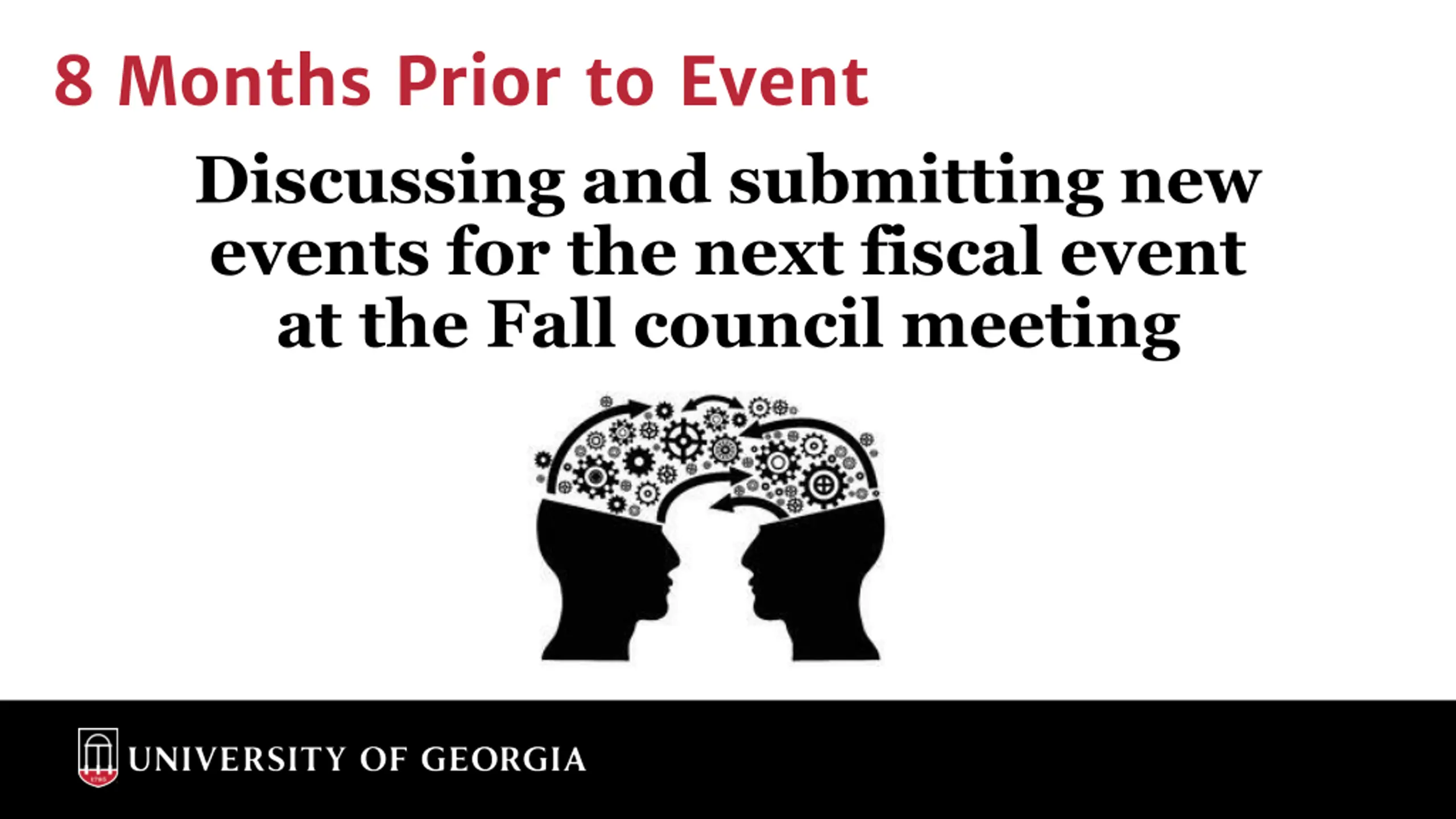 8 Months Prior to Event Discussing and submitting new events for the next fiscal event at the Fall council meeting