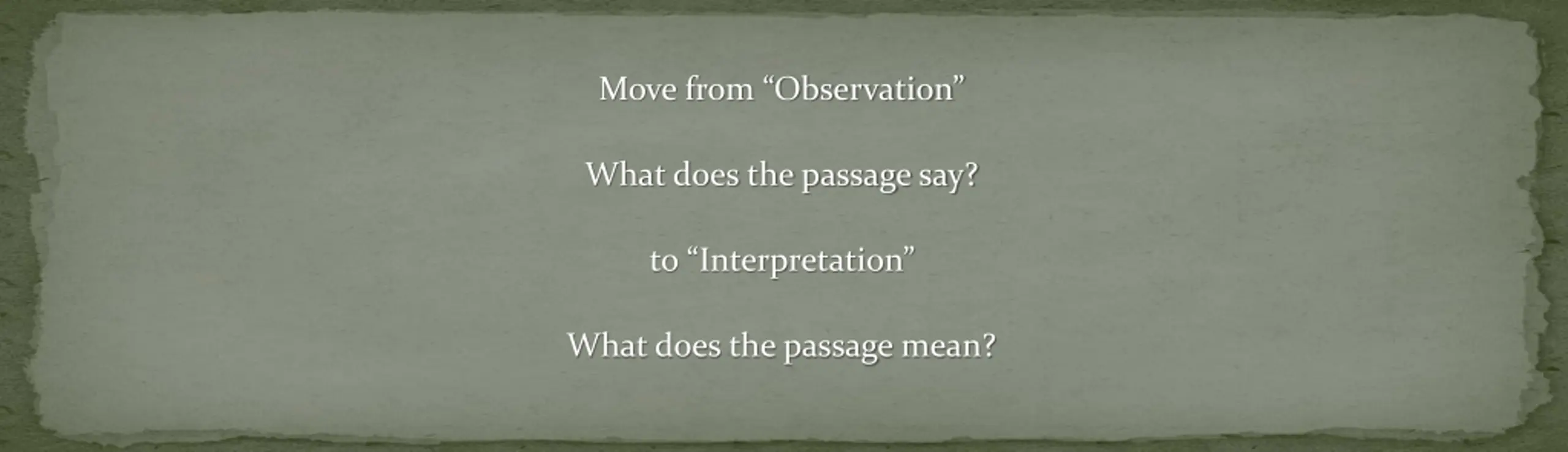 Move from Observation What does the passage say? to Interpretation What does the passage mean?
