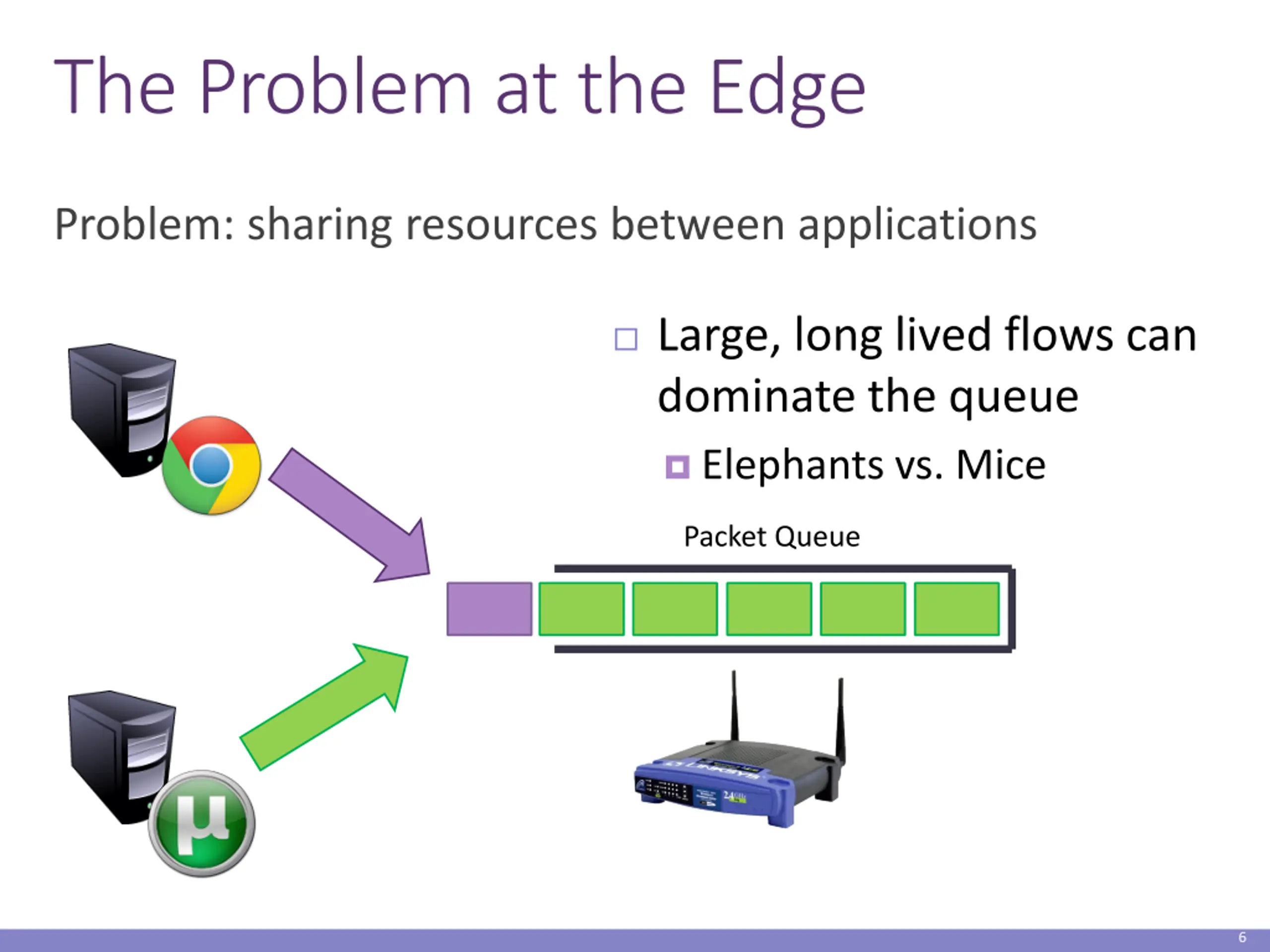 The Problem at the Edge Problem: sharing resources between applications Large, long lived flows can dominate the queue Elephants vs. Mice Packet Queue 6