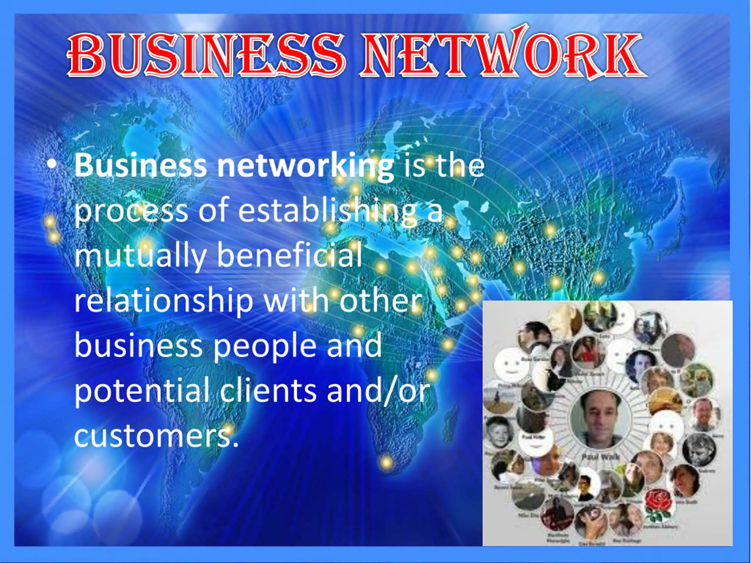 Business NETWORK Business NETWORK Business networking is the process of establishing a mutually beneficial relationship with other business people and potential clients and/or customers.