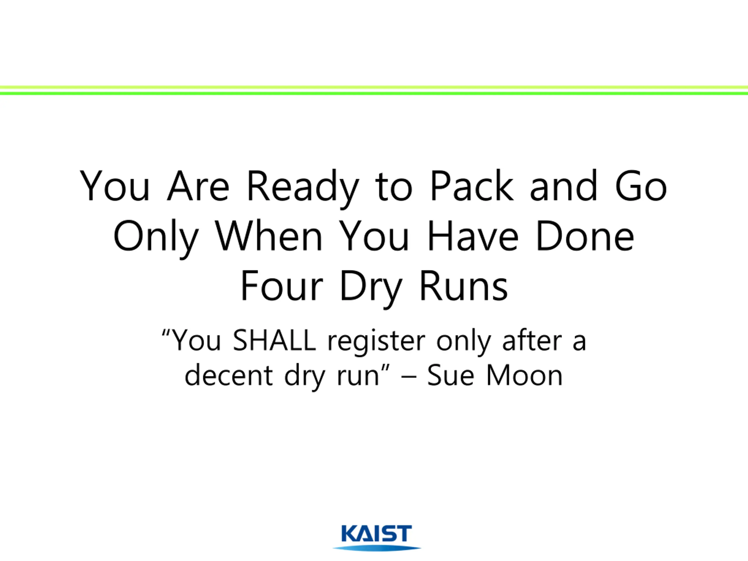 You Are Ready to Pack and Go Only When You Have Done Four Dry Runs You SHALL register only after a decent dry run Sue Moon
