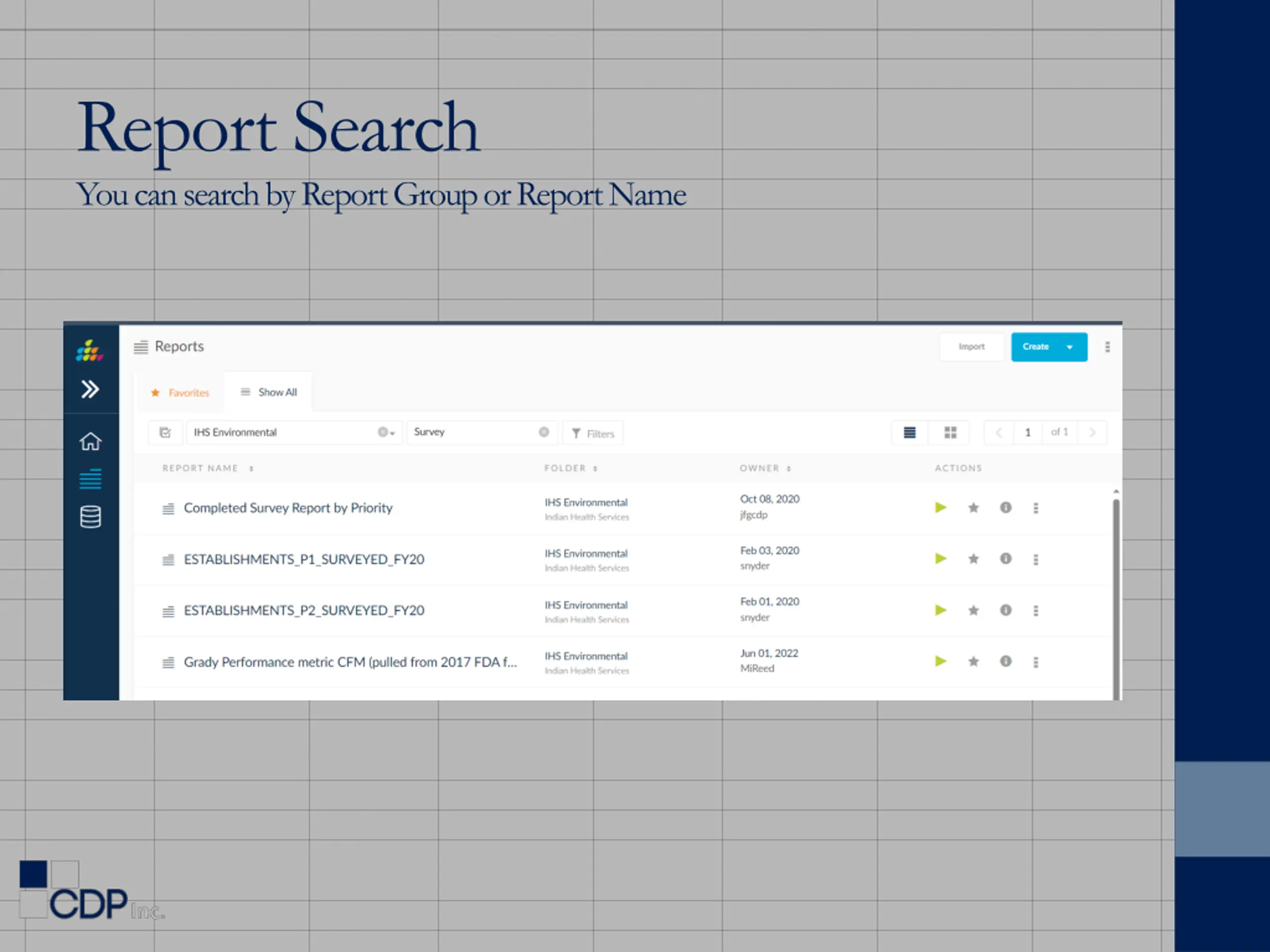 All Reports Selecting Reports on the side menu bar will populate all reports in a list format and give you the ability to search for a specific report.