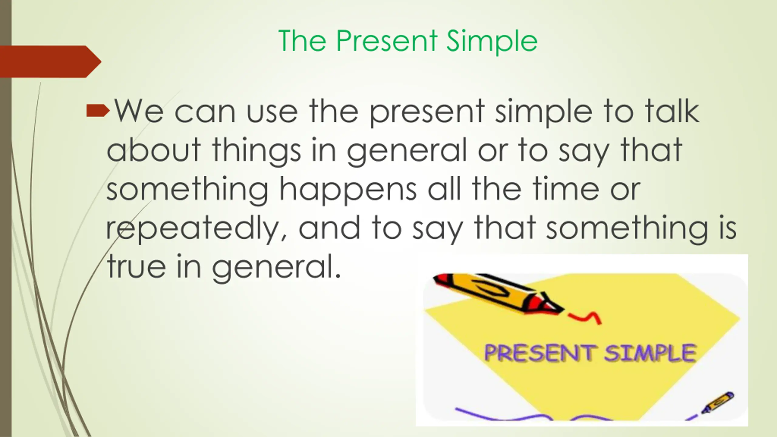The Present Simple We can use the present simple to talk about things in general or to say that something happens all the time or repeatedly, and to say that something is true in general.