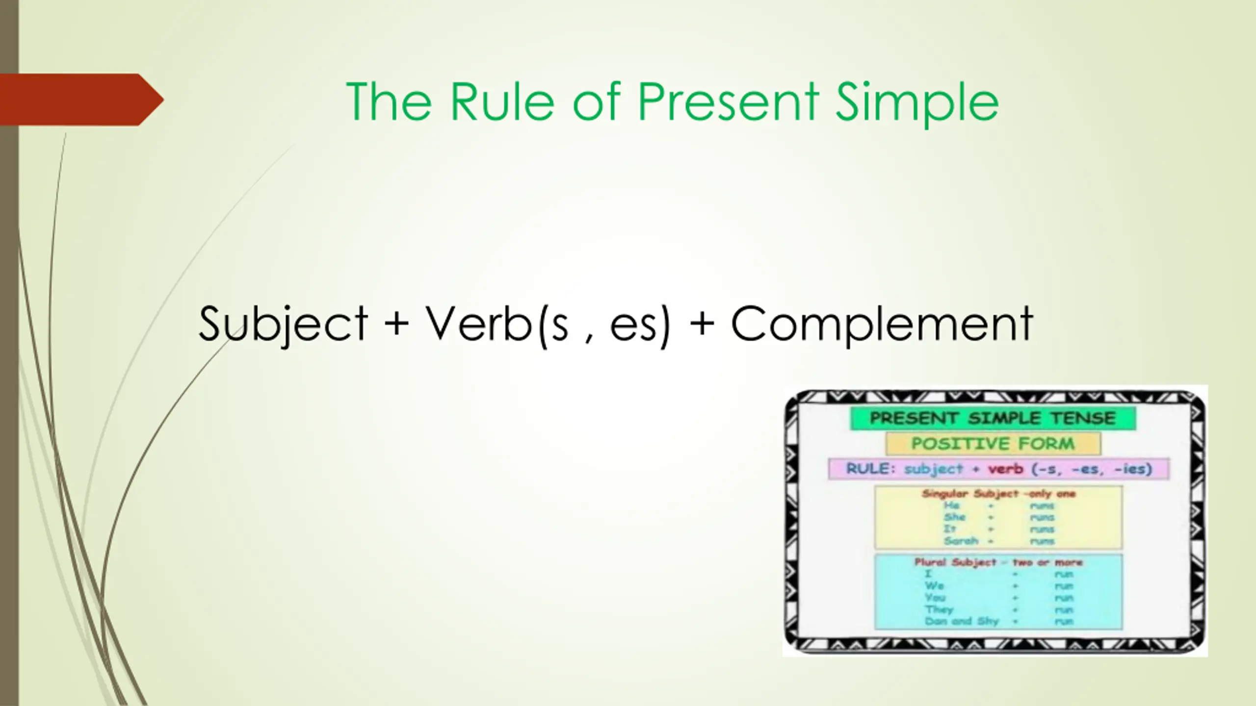 The Rule of Present Simple Subject + Verb(s , es) + Complement
