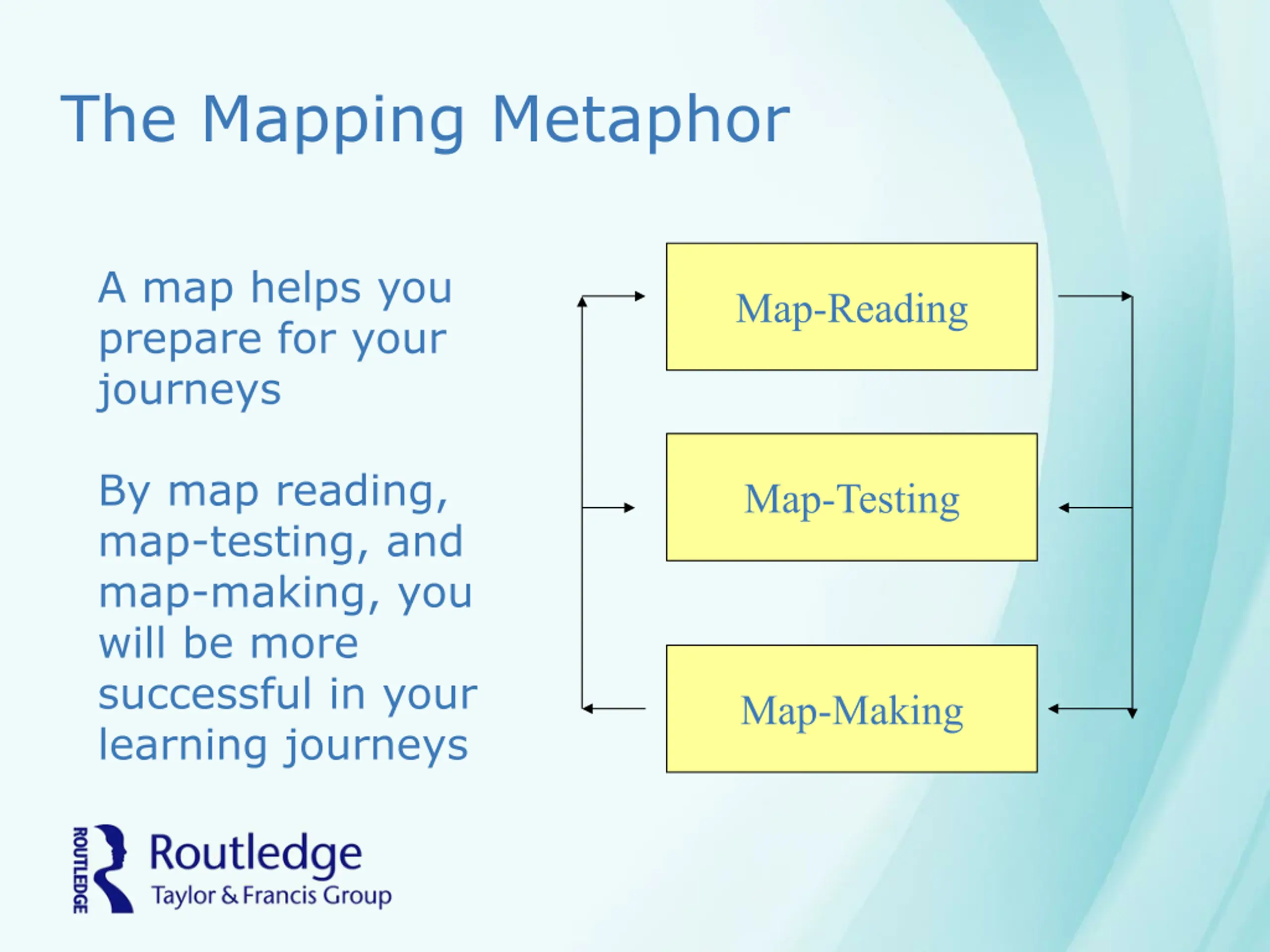 The Mapping Metaphor A map helps you prepare for your journeys Map-Reading By map reading, map-testing, and map-making, you will be more successful in your learning journeys Map-Testing Map-Making