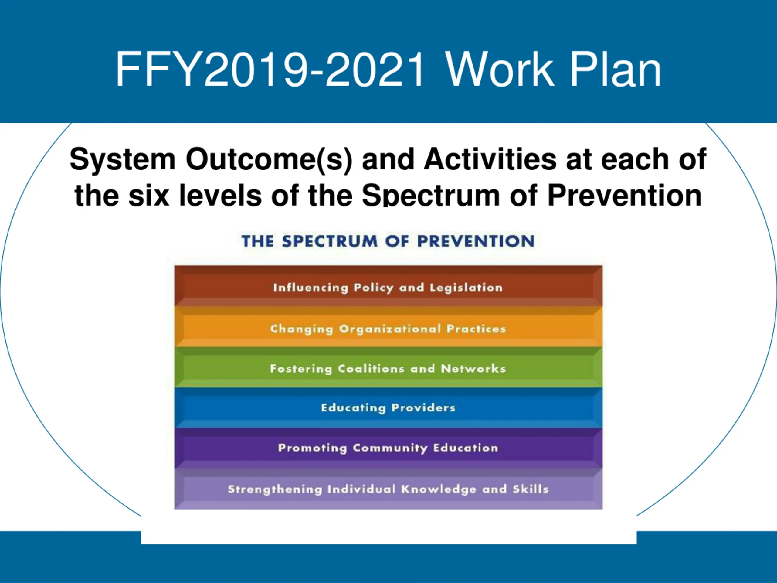 FFY2019-2021 Work Plan System Outcome(s) and Activities at each of the six levels of the Spectrum of Prevention