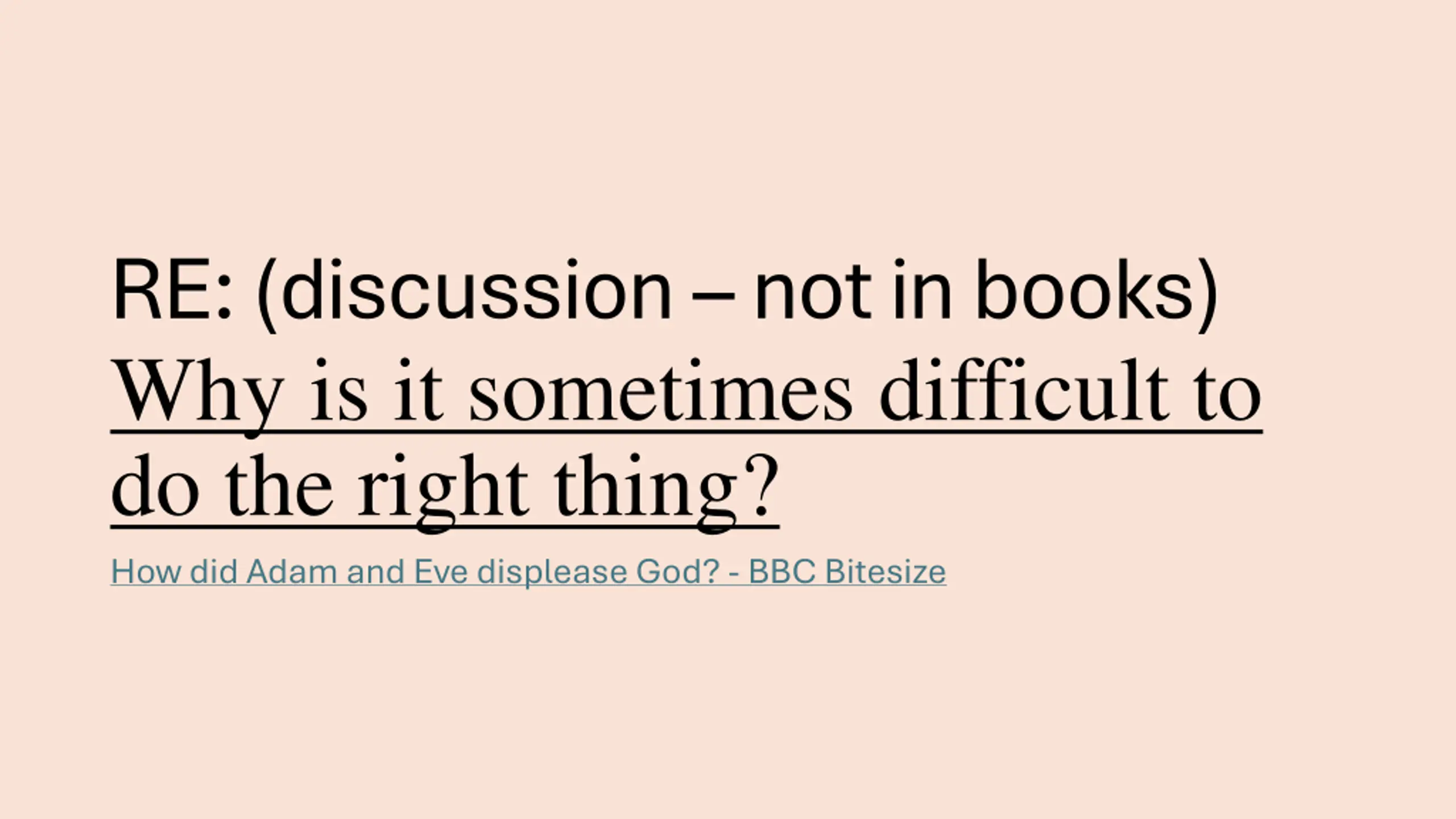 RE: (discussion not in books) Why is it sometimes difficult to do the right thing? How did Adam and Eve displease God? - BBC Bitesize