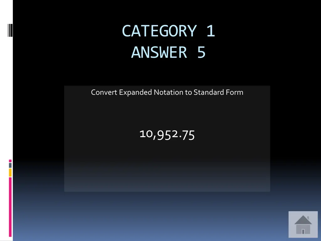 CATEGORY 1 ANSWER 5 Convert Expanded Notation to Standard Form 10,952.75