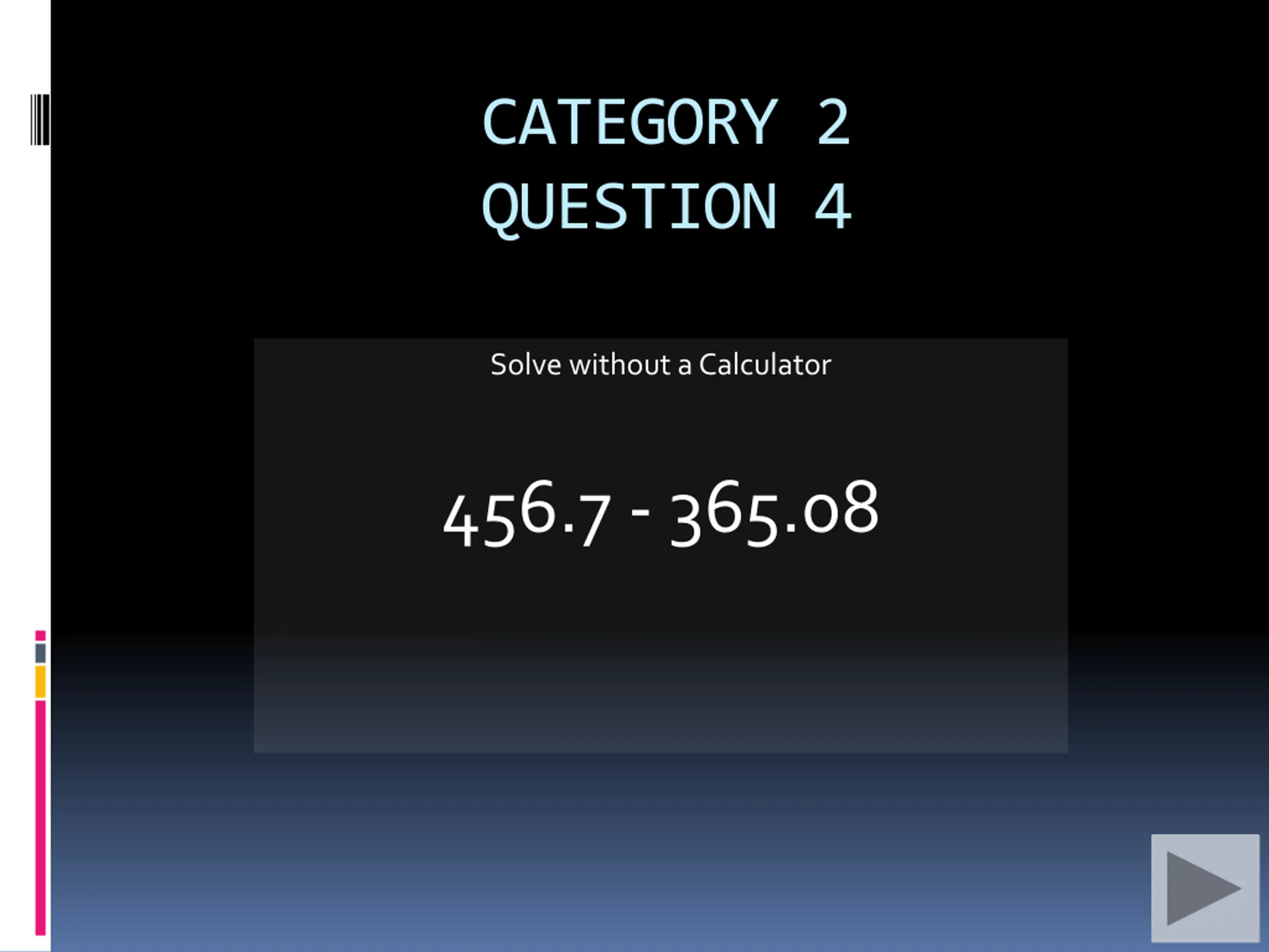 CATEGORY 2 QUESTION 4 Solve without a Calculator 456.7 - 365.08