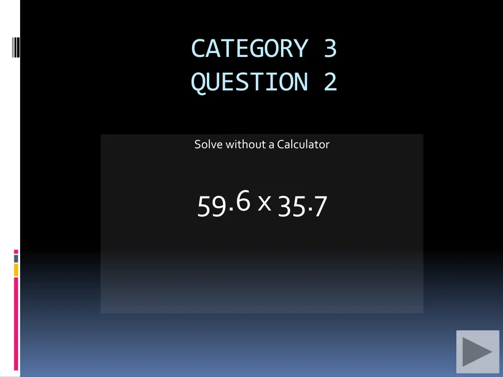 CATEGORY 3 QUESTION 2 Solve without a Calculator 59.6 x 35.7
