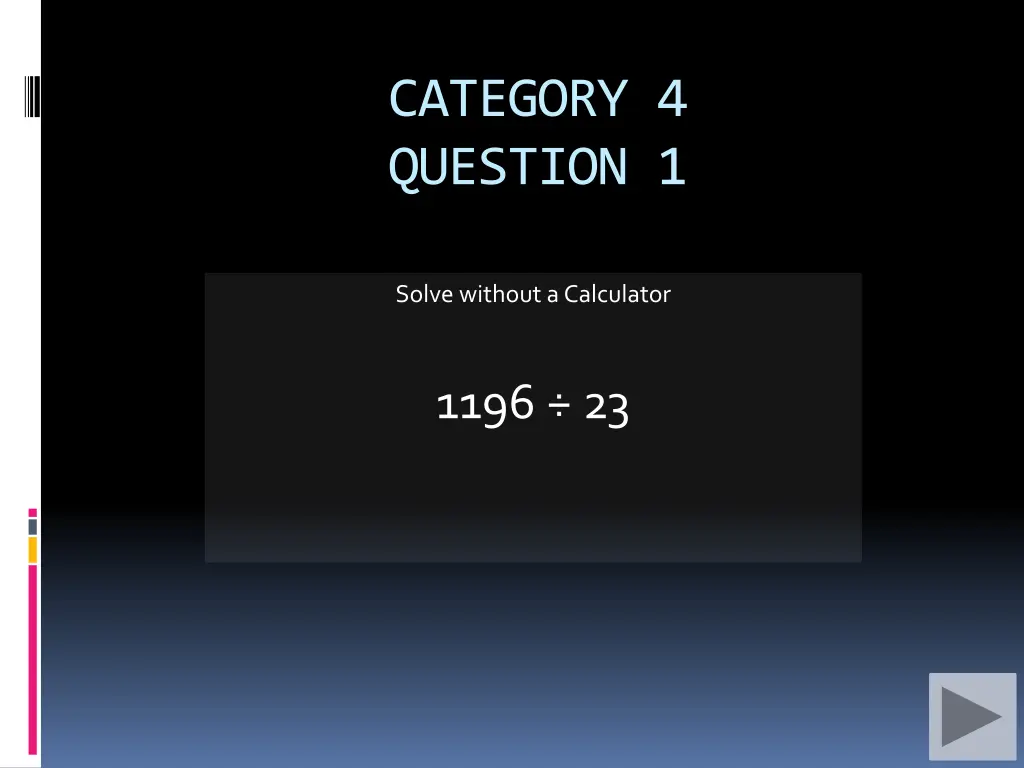 CATEGORY 4 QUESTION 1 Solve without a Calculator 1196 23
