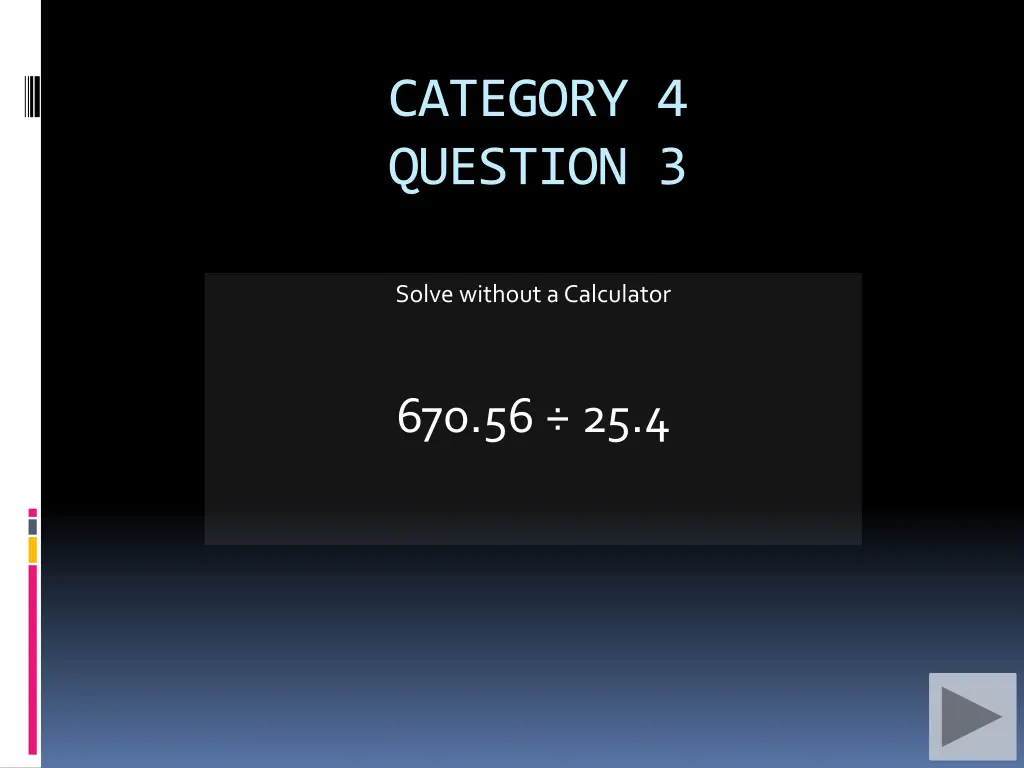 CATEGORY 4 QUESTION 3 Solve without a Calculator 670.56 25.4