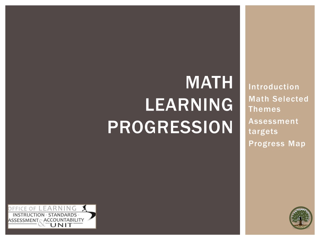 MATH Introduction Math Selected Themes Assessment targets Progress Map LEARNING PROGRESSION