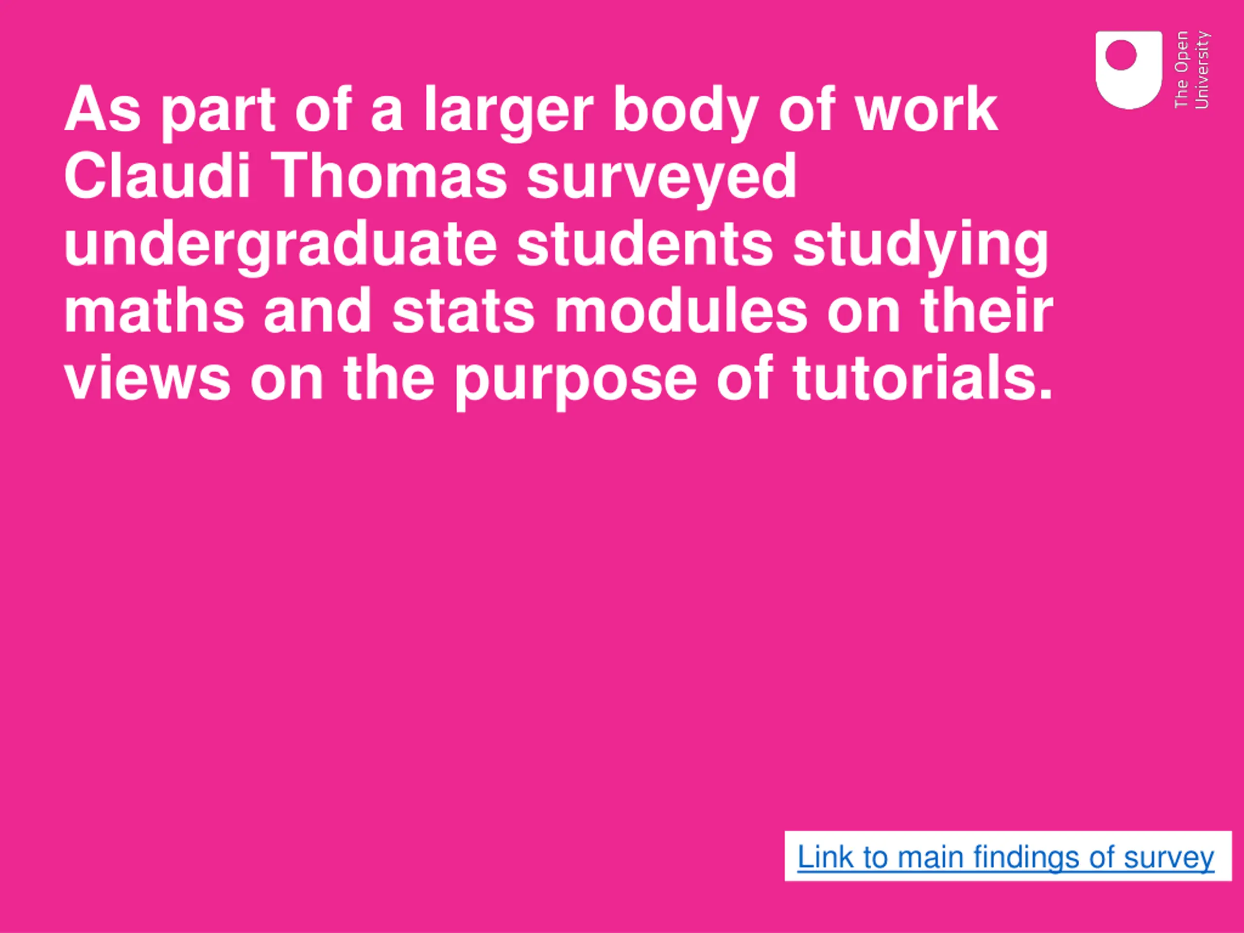 As part of a larger body of work Claudi Thomas surveyed undergraduate students studying maths and stats modules on their views on the purpose of tutorials. Link to main findings of survey