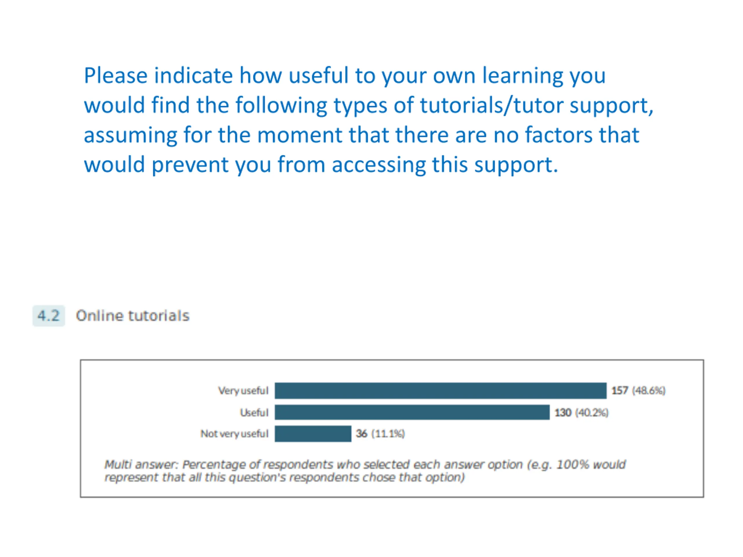 Please indicate how useful to your own learning you would find the following types of tutorials/tutor support, assuming for the moment that there are no factors that would prevent you from accessing this support.