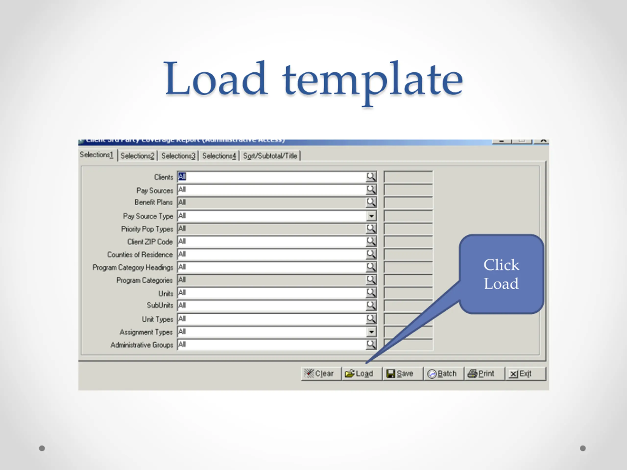 Choose the template for you Select the Template All 3rd PARTY COVERAGE: Then click on load