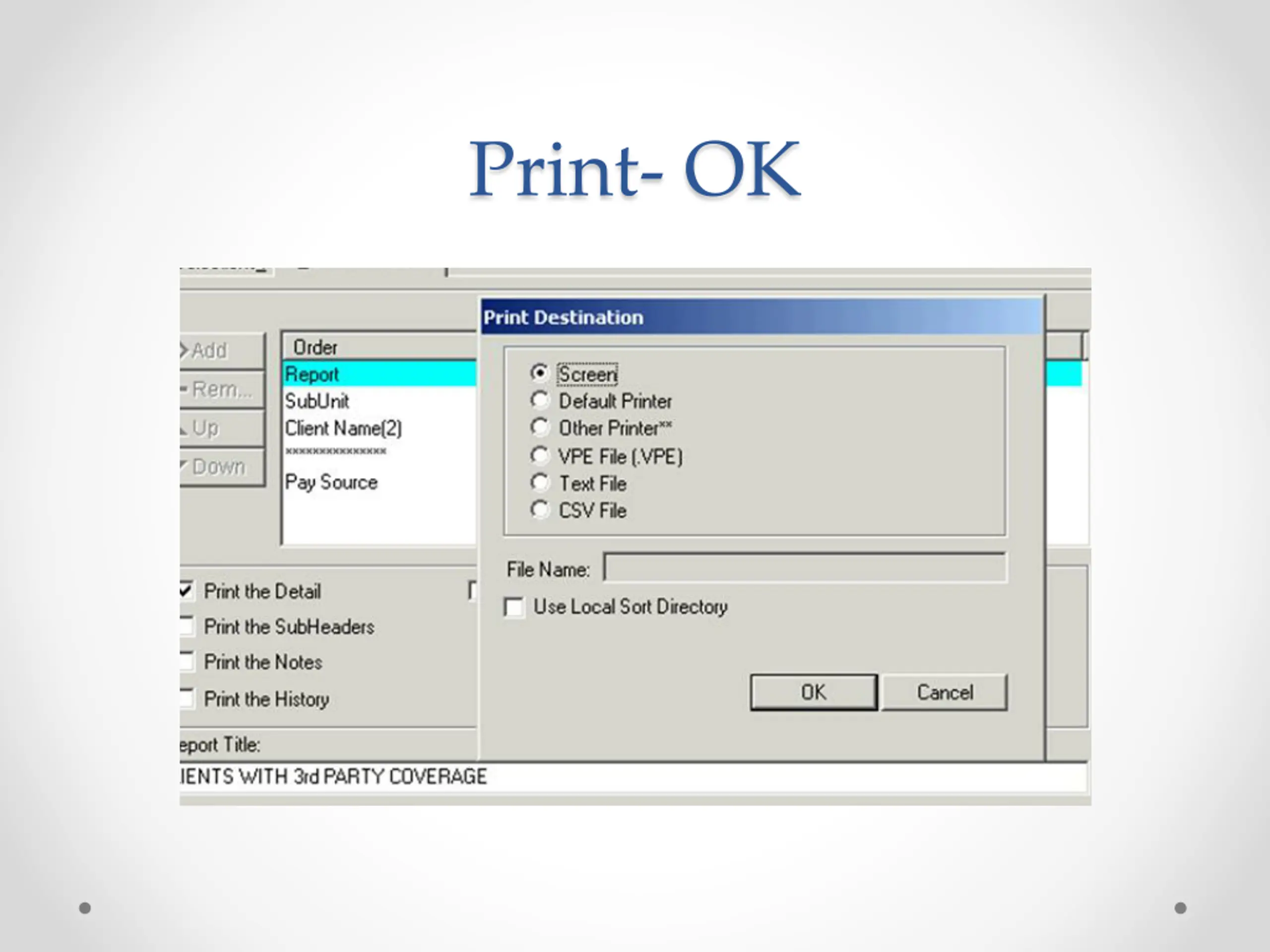 Go to Sort/Subtotal/Title Tab. You can rename the report to show when you ran the report. (optional) You re ready to print.