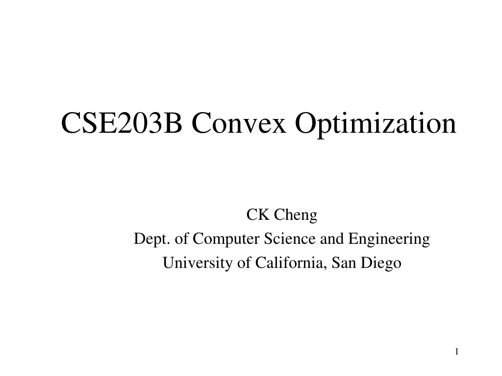 CSE203B Convex Optimization CK Cheng Dept. of Computer Science and Engineering University of California, San Diego 1