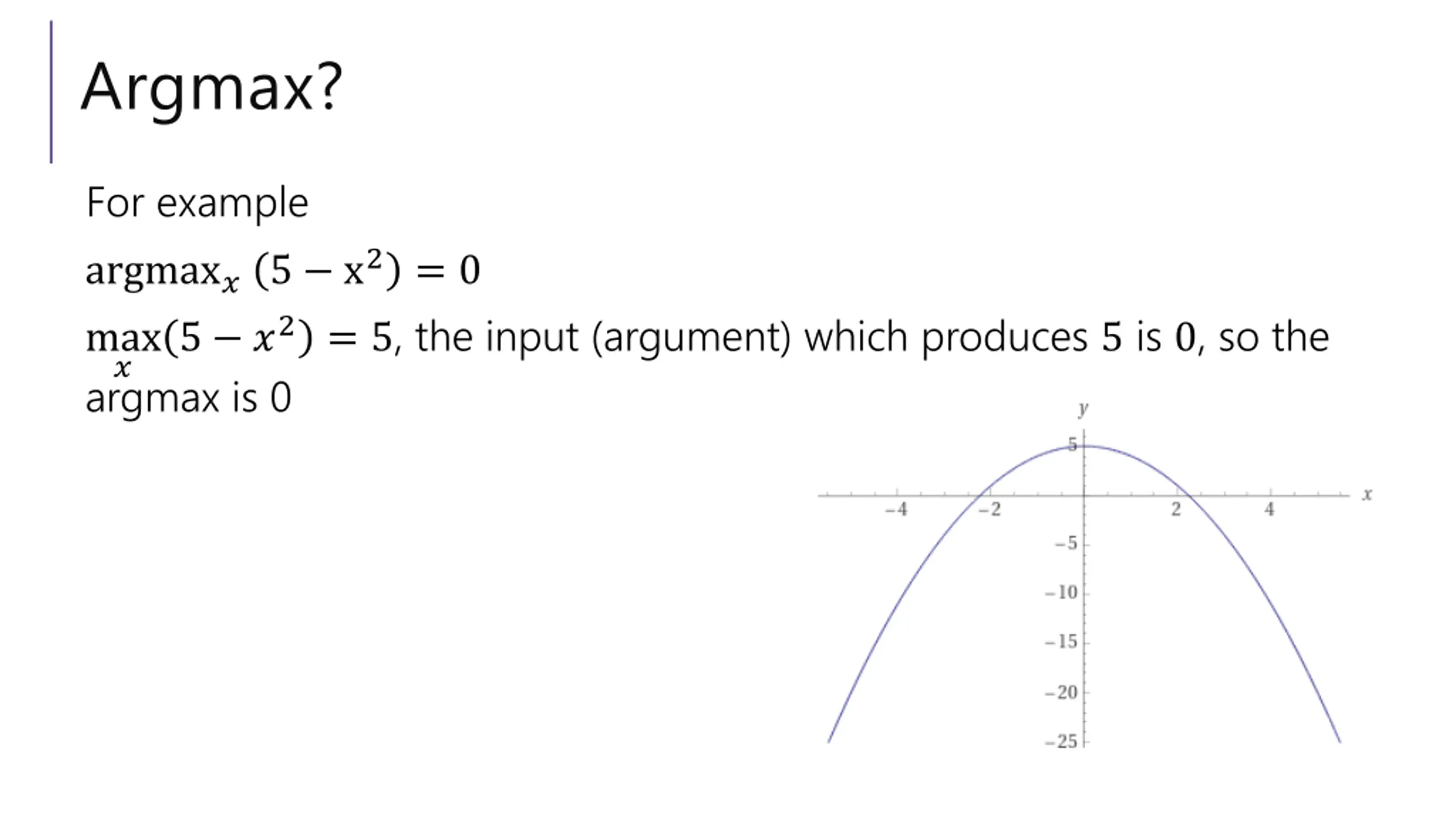Argmax? For example argmax? 5 x2= 0 max ? argmax is 0 5 ?2= 5, the input (argument) which produces 5 is 0, so the