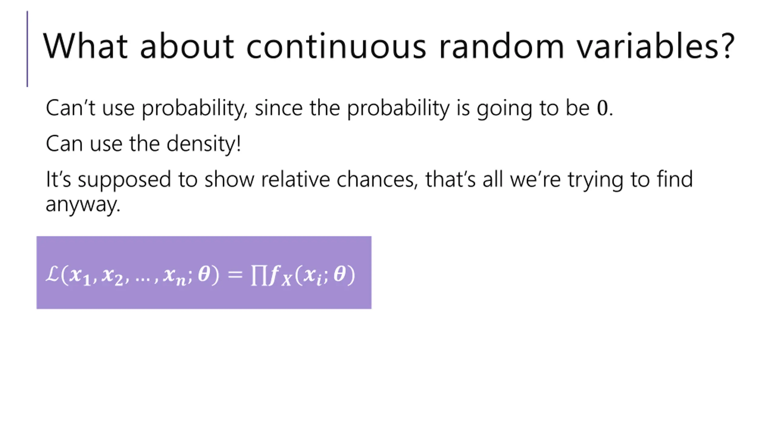 What about continuous random variables? Can t use probability, since the probability is going to be 0. Can use the density! It s supposed to show relative chances, that s all we re trying to find anyway. (??,??, ,??;?) = ??(??;?)