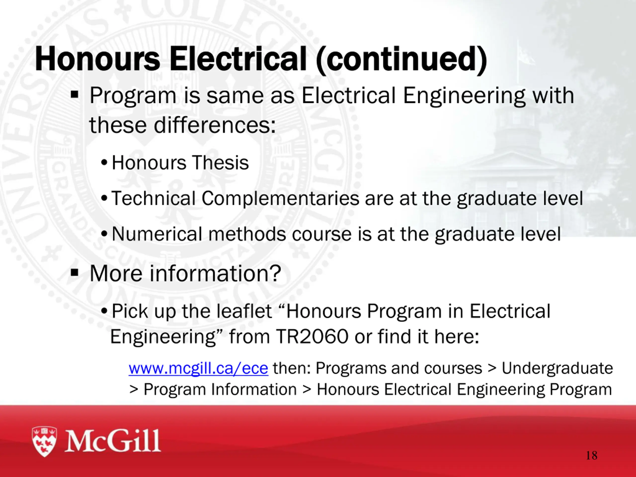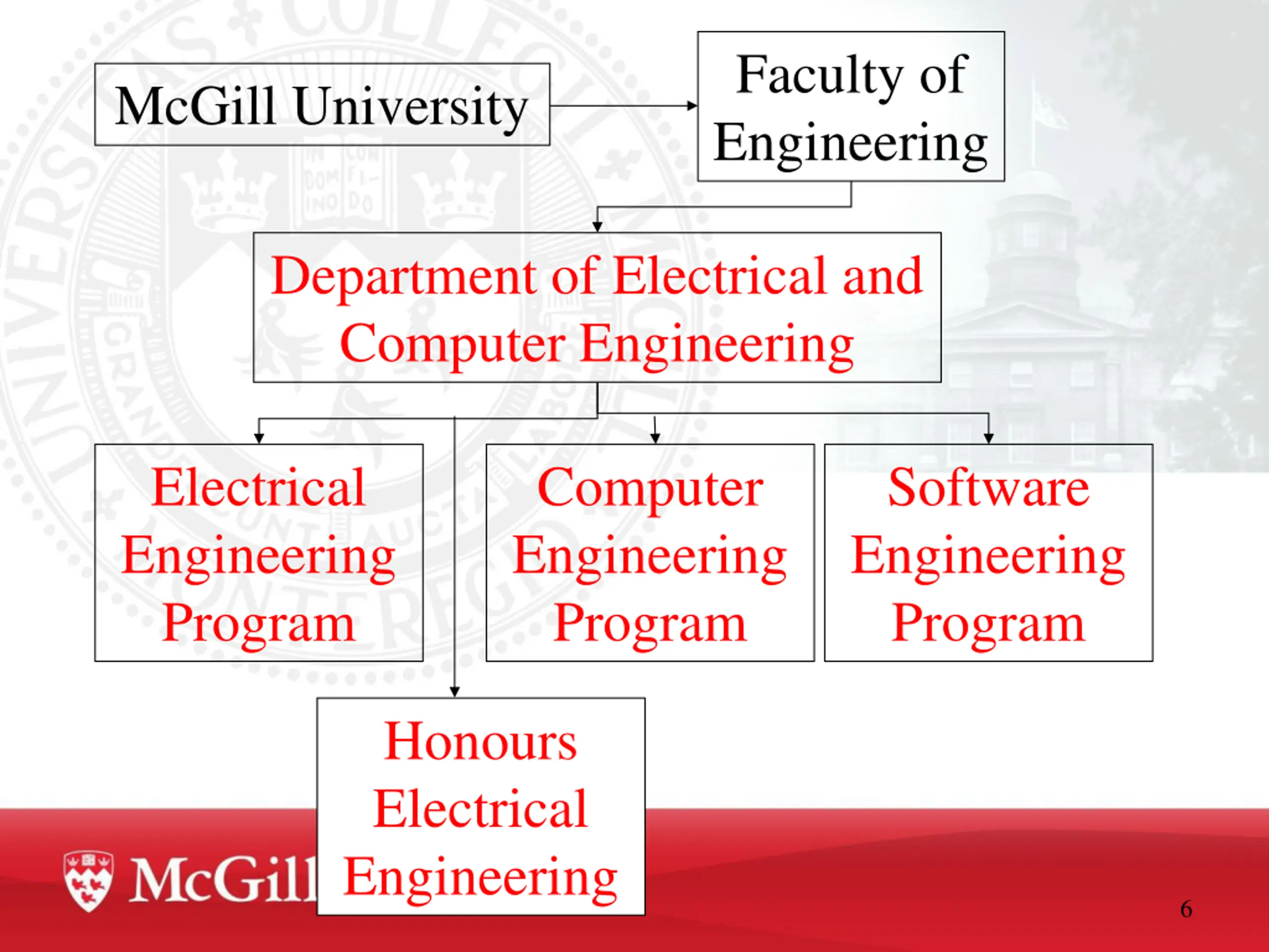 Faculty of Engineering McGill University Department of Electrical and Computer Engineering Electrical Engineering Program Computer Engineering Program Software Engineering Program Honours Electrical Engineering 6