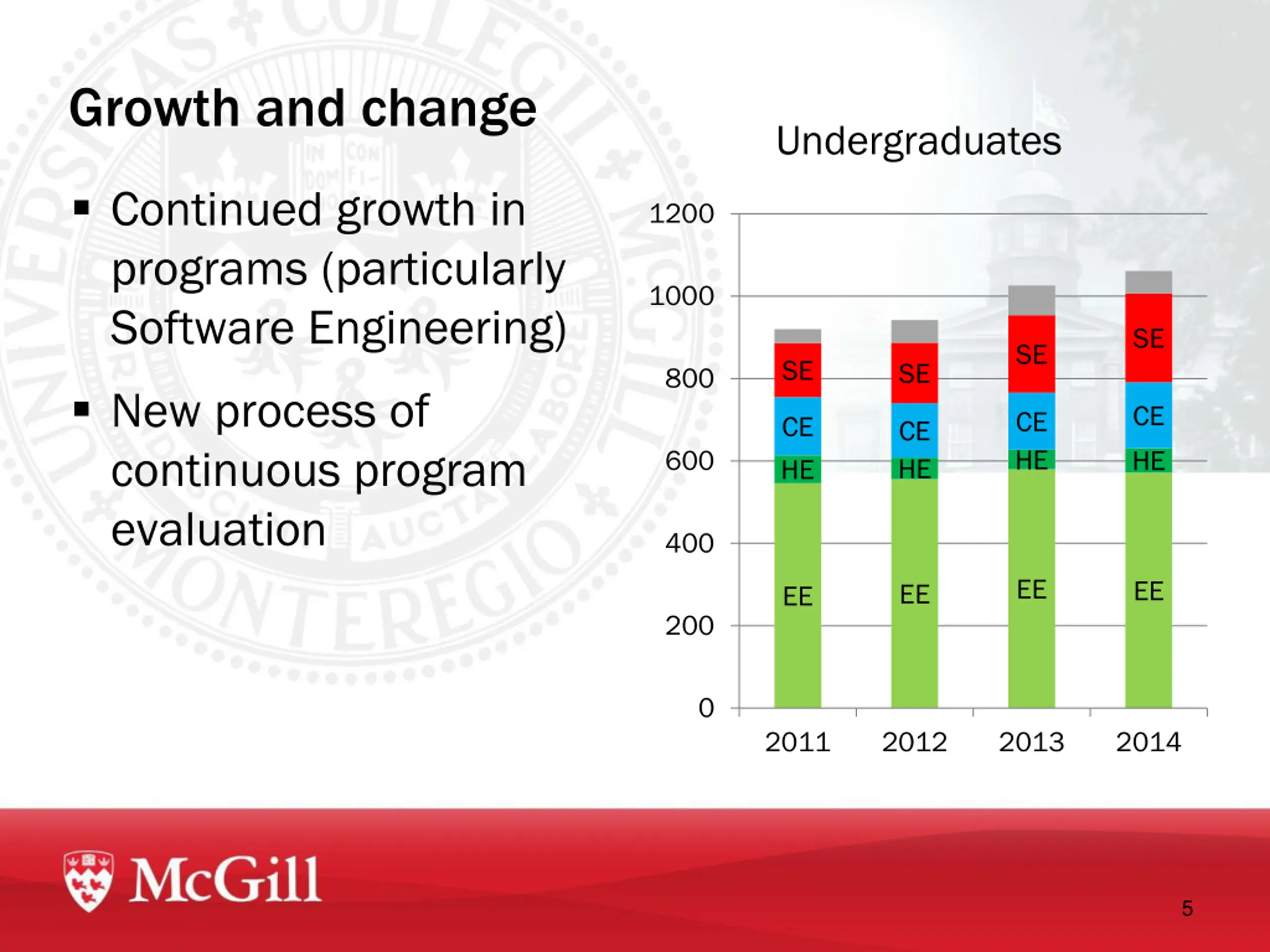 Growth and change Undergraduates Continued growth in programs (particularly Software Engineering) 1200 1000 SE SE SE SE 800 New process of continuous program evaluation CE CE CE CE HE 600 HE HE HE 400 EE EE EE EE 200 0 2011 2012 2013 2014 5