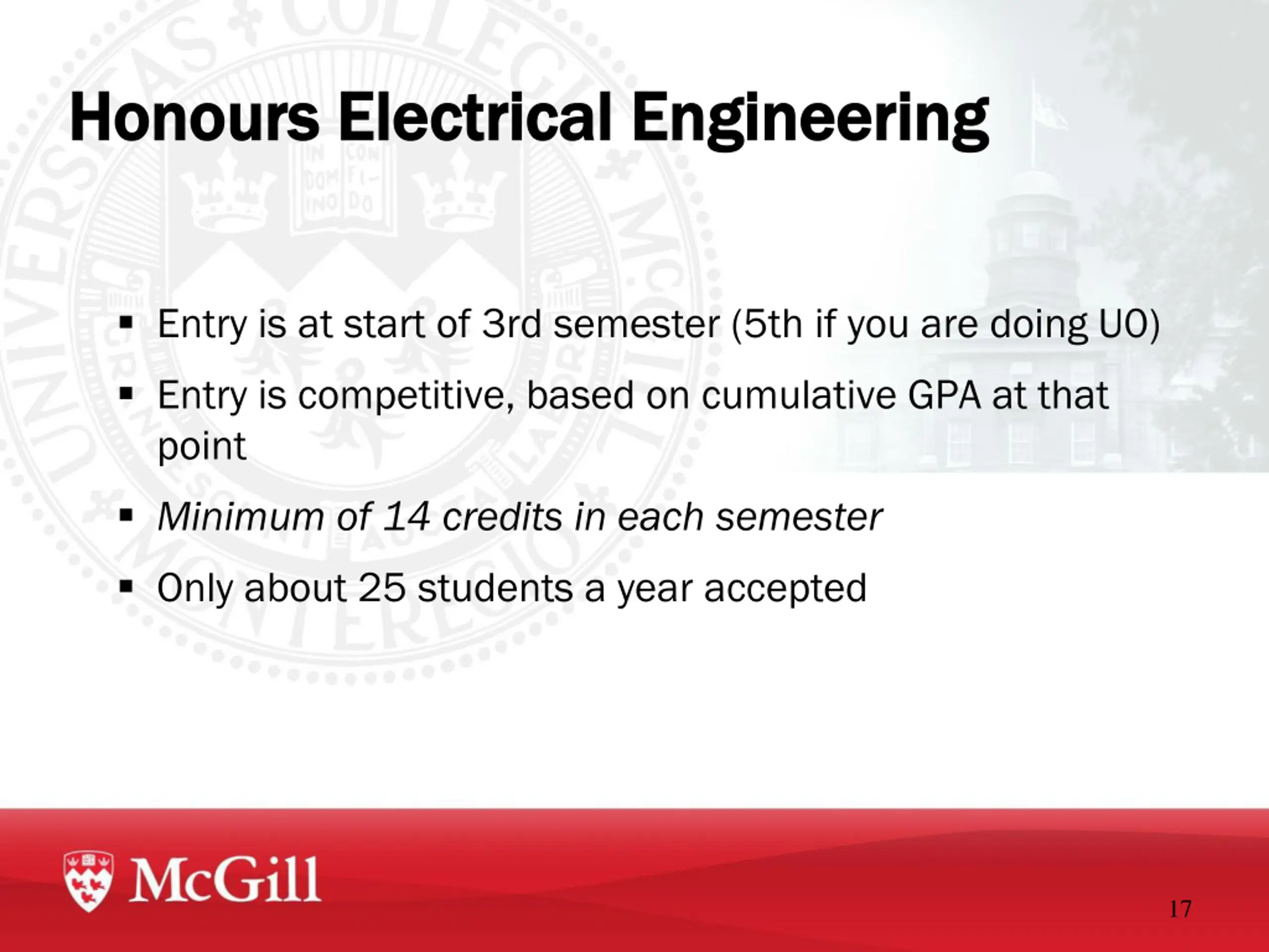 Honours Electrical Engineering Honours Electrical Engineering Entry is at start of 3rd semester (5th if you are doing U0) Entry is competitive, based on cumulative GPA at that point Minimum of 14 credits in each semester Only about 25 students a year accepted 17