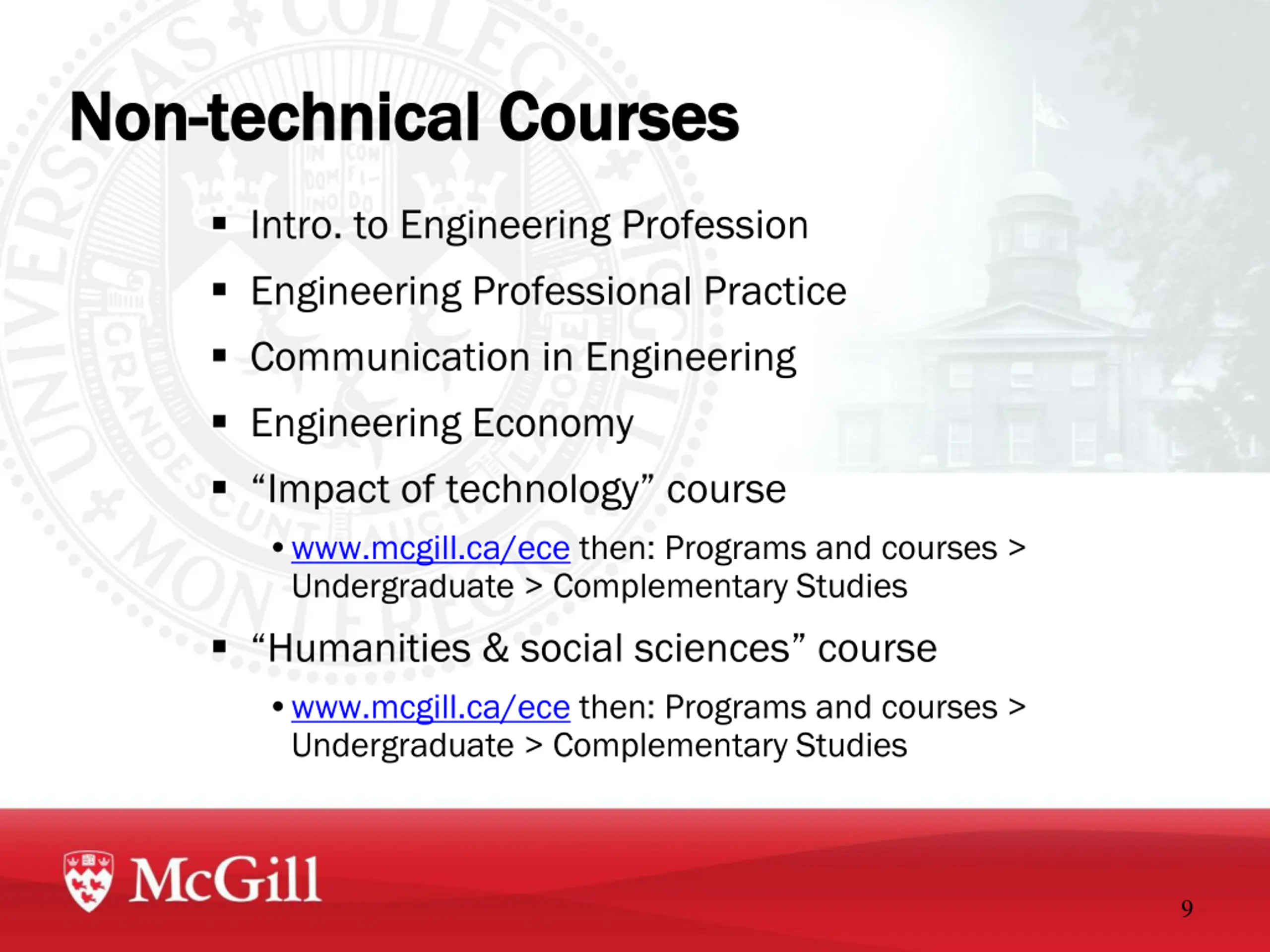 Non Non- -technical Courses technical Courses Intro. to Engineering Profession Engineering Professional Practice Communication in Engineering Engineering Economy Impact of technology course www.mcgill.ca/ece then: Programs and courses > Undergraduate > Complementary Studies Humanities & social sciences course www.mcgill.ca/ece then: Programs and courses > Undergraduate > Complementary Studies 9