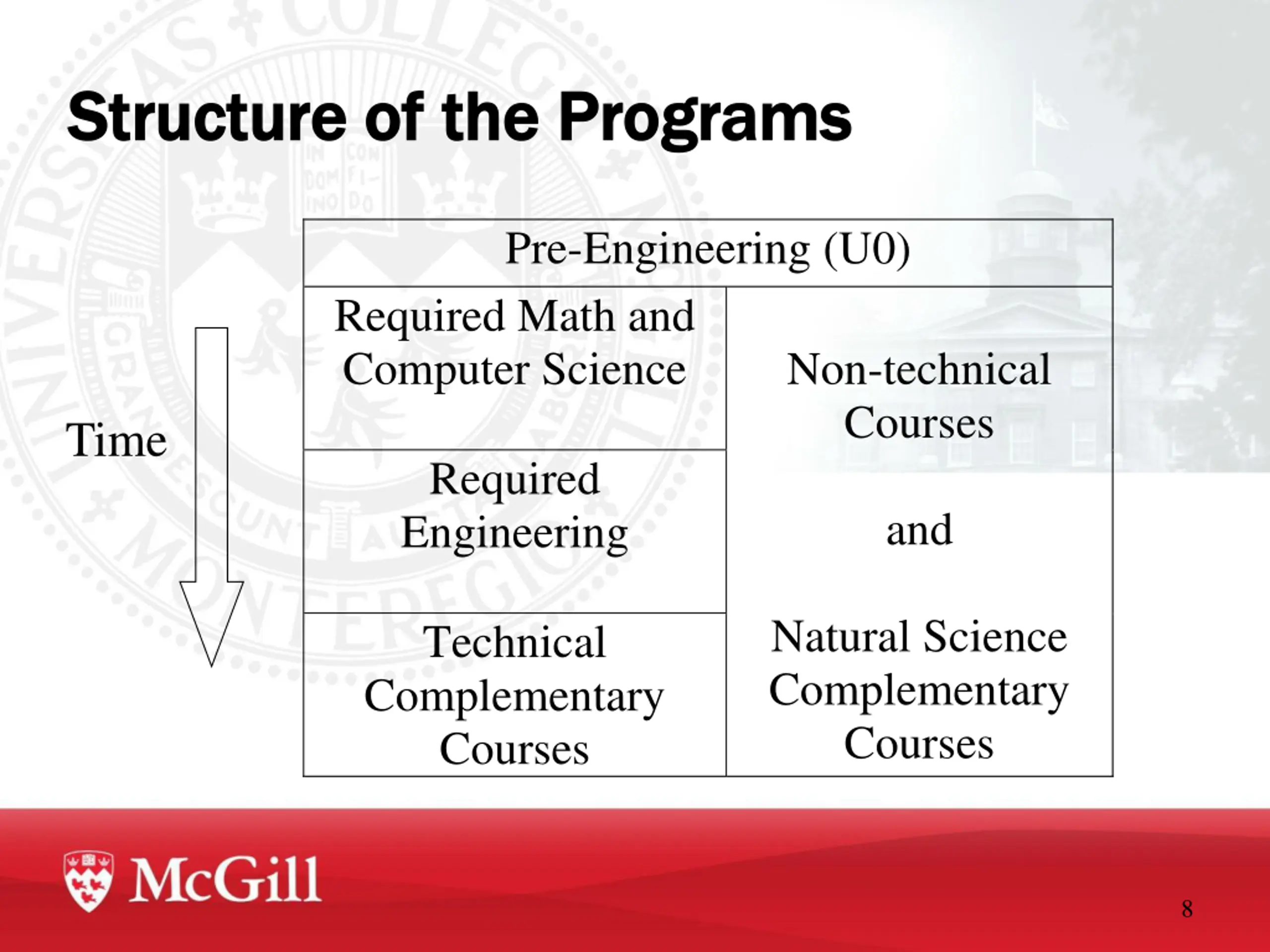 Structure of the Programs Structure of the Programs Pre-Engineering (U0) Required Math and Computer Science Non-technical Courses and Natural Science Complementary Courses Time Required Engineering Technical Complementary Courses 8