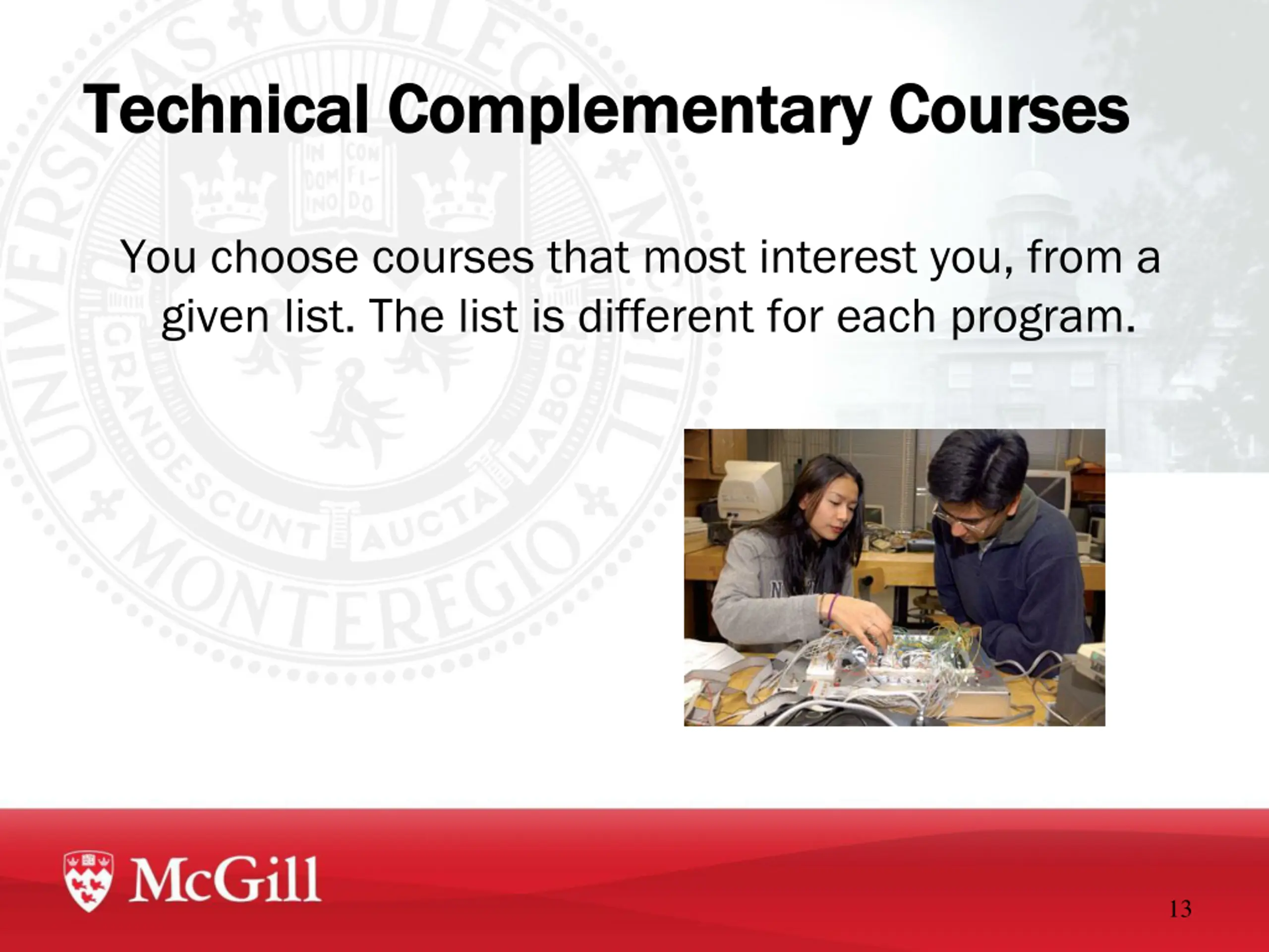 Technical Complementary Courses Technical Complementary Courses You choose courses that most interest you, from a given list. The list is different for each program. 13