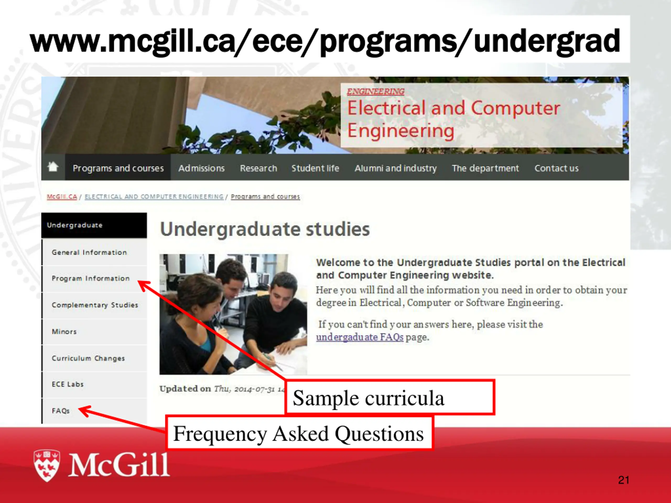 www.mcgill.ca/ece/programs/undergrad www.mcgill.ca/ece/programs/undergrad Sample curricula Frequency Asked Questions 21