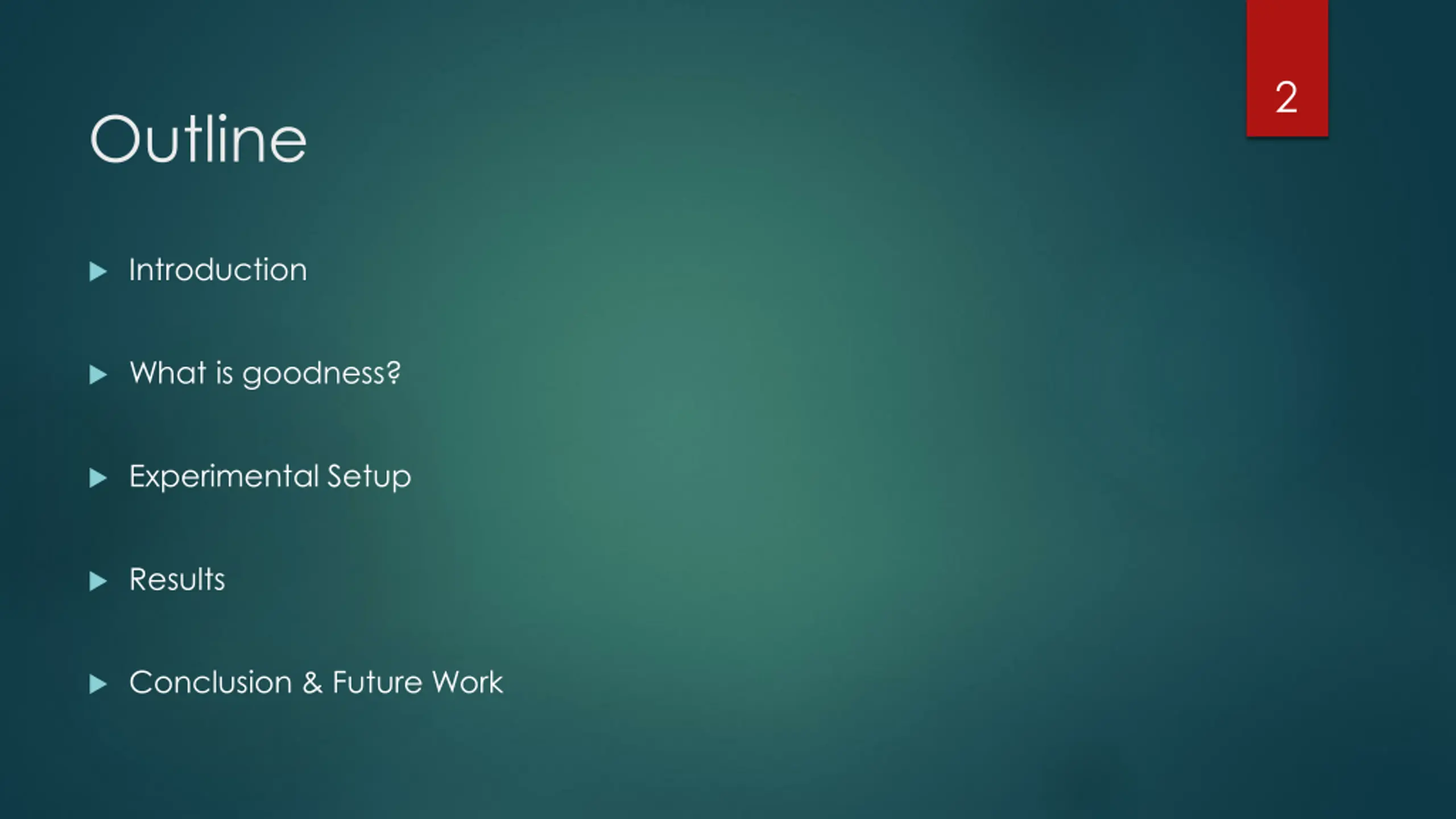 2 Outline Introduction What is goodness? Experimental Setup Results Conclusion & Future Work