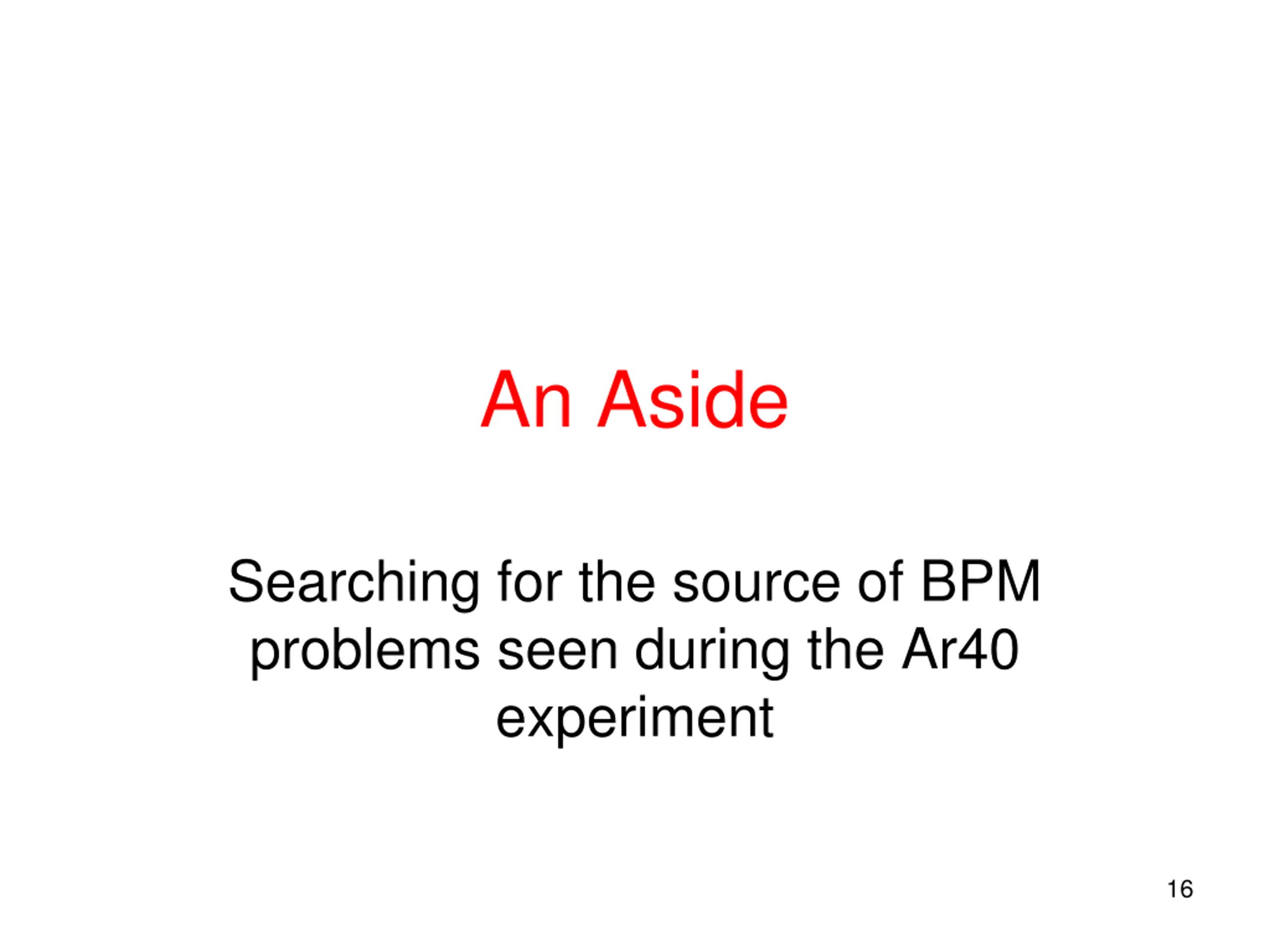 An Aside Searching for the source of BPM problems seen during the Ar40 experiment 16