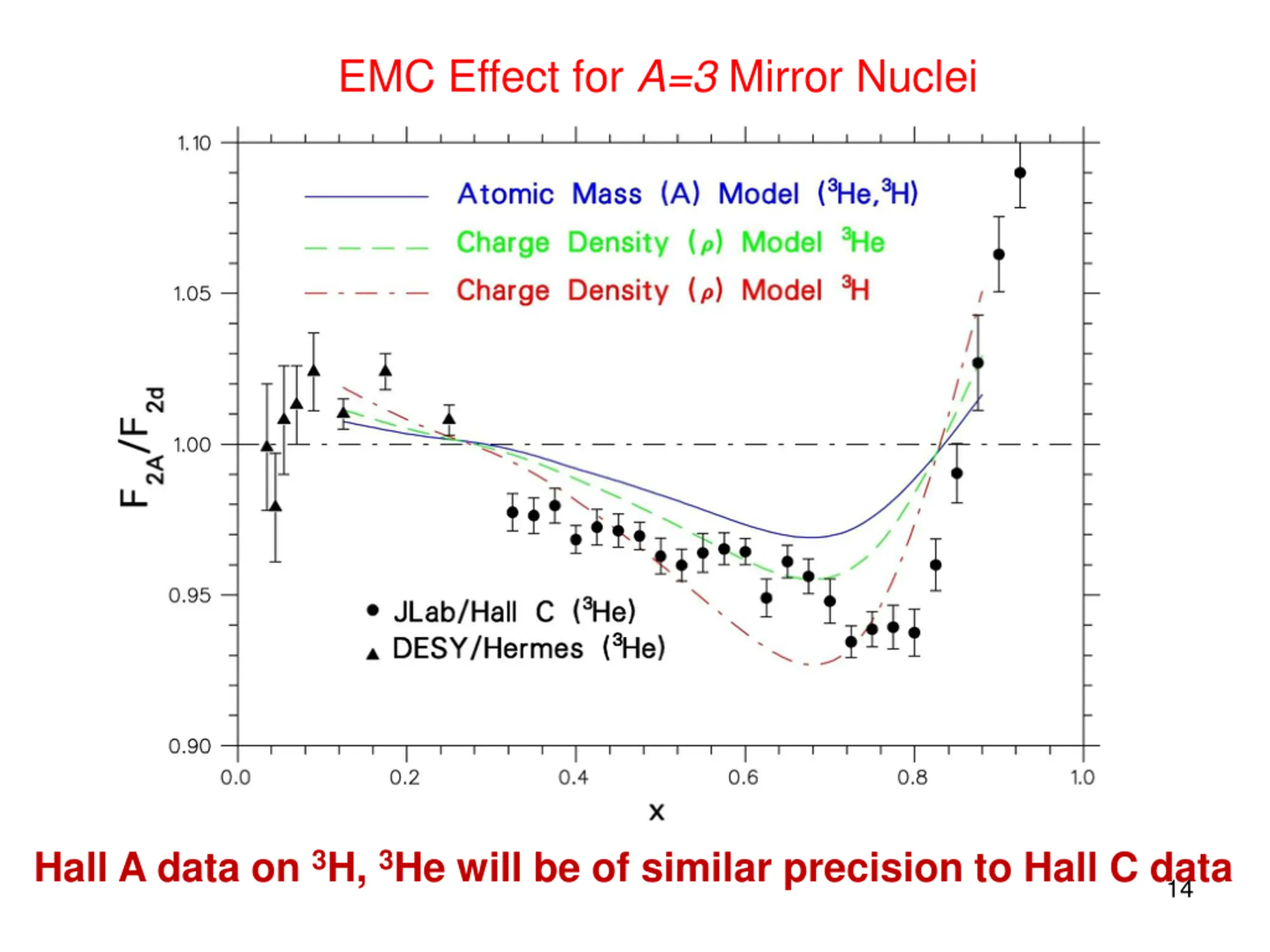 EMC Effect for A=3 Mirror Nuclei Hall A data on 3H, 3He will be of similar precision to Hall C data 14