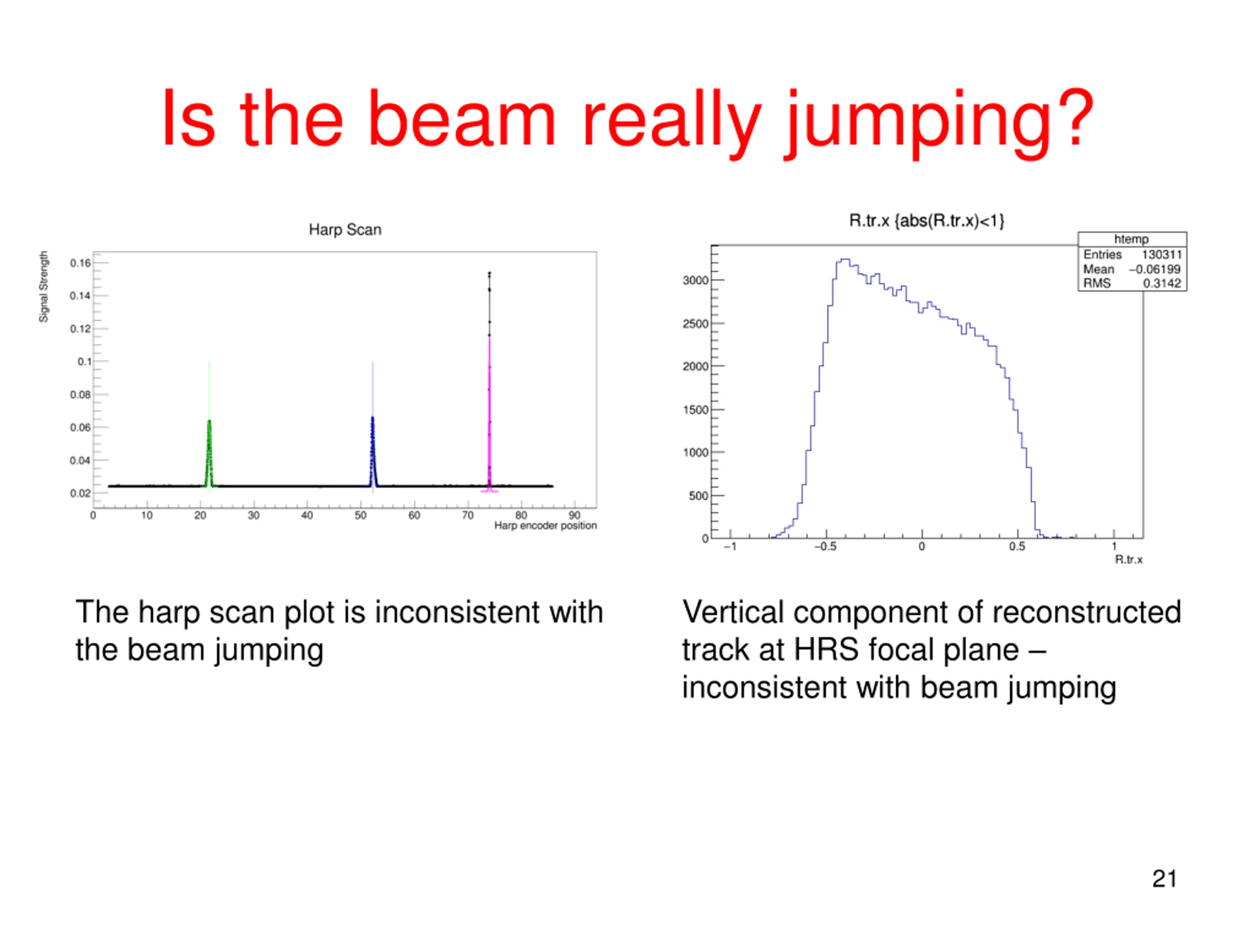 Is the beam really jumping? The harp scan plot is inconsistent with the beam jumping Vertical component of reconstructed track at HRS focal plane inconsistent with beam jumping 21